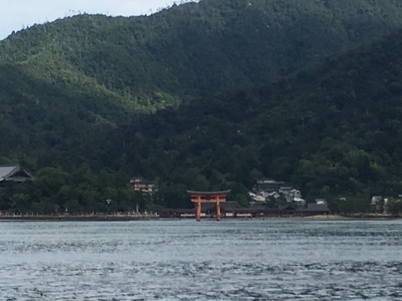 Cette mini-croisière vaut le détour en particulier pour la vue imprenable et majestueuse sur le O-Torii (grand portail de 16 mètres datant de 1875 – piliers de 10 mètres de circonférence et son toit qui mesure 24 mètres), de couleur vermillon, symbole de Miyajima et du sanctuaire d’Itsukushima. Le bateau fait un détour pour que vous puissiez mieux l’apprécier et le photographier ou tout simplement vous en imprégner. Vous pouvez avoir la chance de le découvrir les pieds dans l’eau ou à sec, selon la marée. Et là vous voyez le sable et de nombreuses personnes se faisant photographier sous/devant le O-Torii.