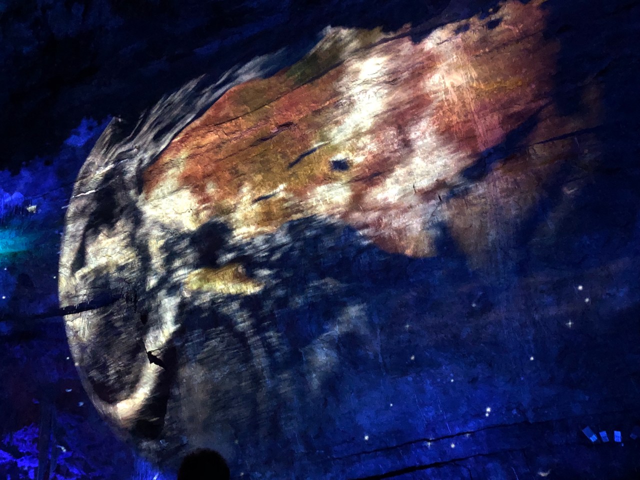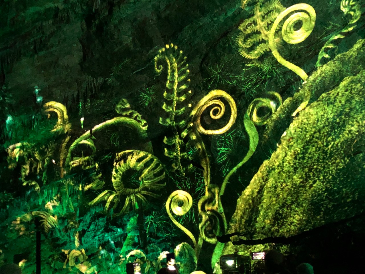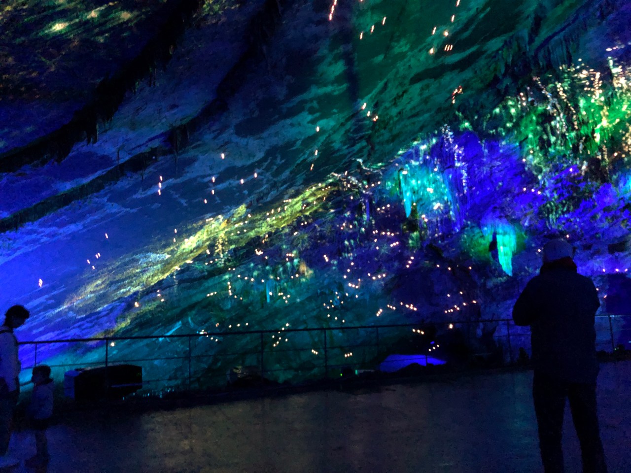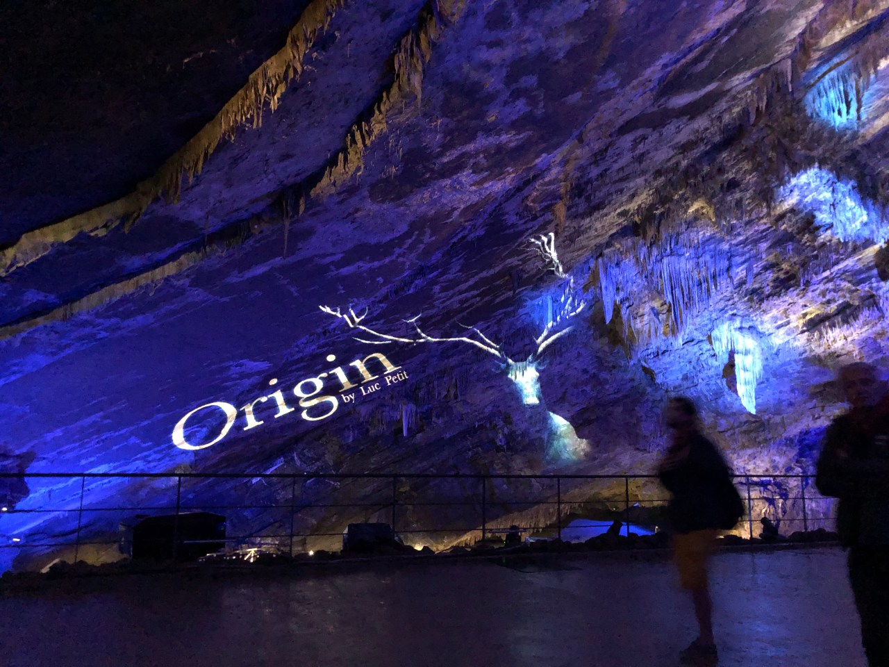 Et c’est là que nous assistons à une descente au flambeau dans la grande salle de la grotte et enfin le clou du spectacle c’est le son et lumière « Origin ». On y retrace l’histoire des grottes. Une création signée Luc PETIT. Époustouflant ! Par des jeux de laser, de vidéo-mapping on entre dans un monde irréel, fantastique, féérique avec des fleurs, des arbres, des dessins d’animaux, dignes de la grotte de Lascaux. Un monde en demi-teinte et qui transporte l’homme là où il ne peut se rendre.