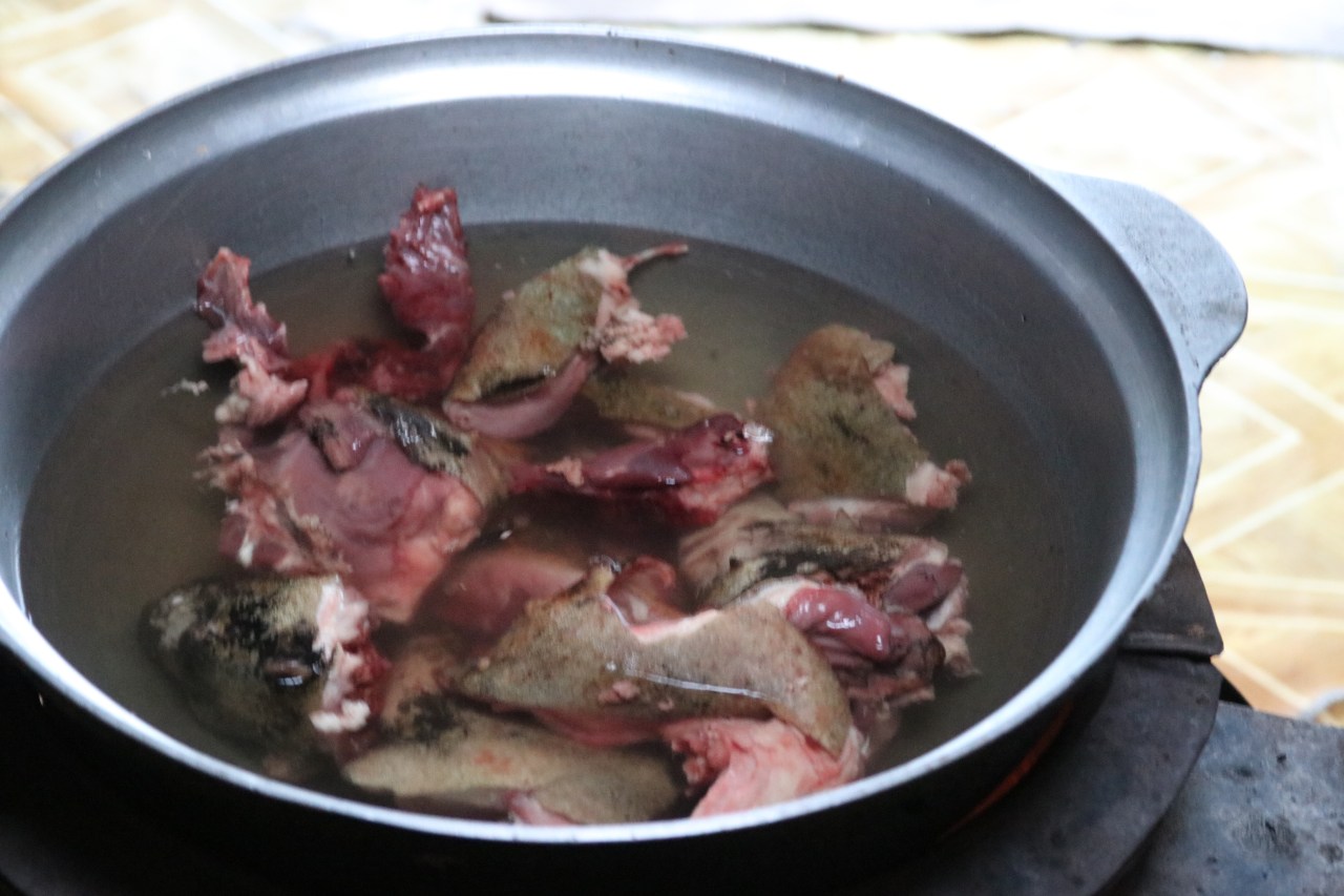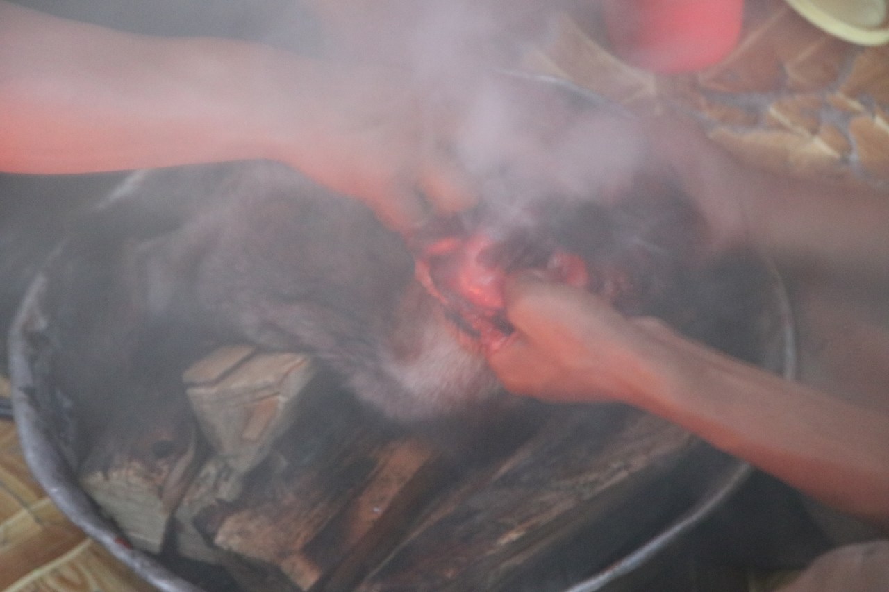 La cuisson terminée, certains ont récupéré les os des pattes avant de marmottes, pour en faire un grigri porte-bonheur. D’autres ont attendus de voir découpé cette bestiole pour se jeter dessus et la manger toute crue ou plutôt toute cuite !