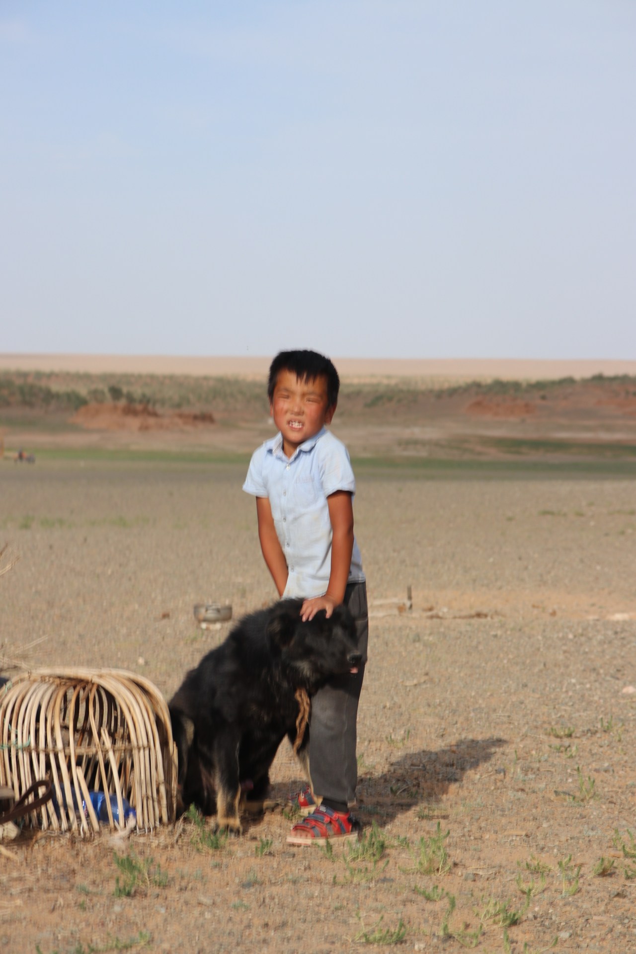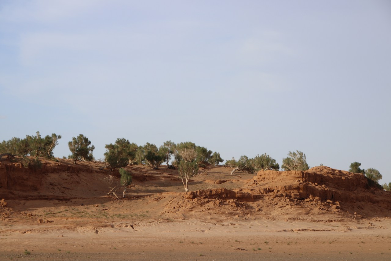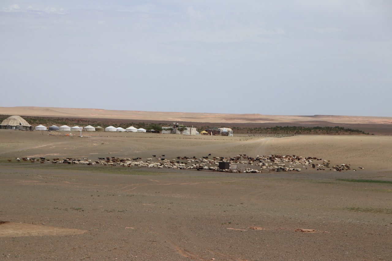 Nous campions dans les yourtes d’une famille de cinq personnes : trois enfants, deux filles et un garçon, le père, la mère. De cet endroit, on surplombe la région et on peut voir à deux kilomètres les forêts de saxaouls. Saxaouls qui sont des petits arbres de deux mètres maximum, qui serpentent sur le sol sablonneux et permettent aux nomades de s’en servir comme bois de chauffage.