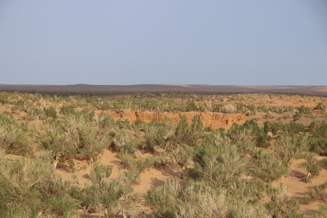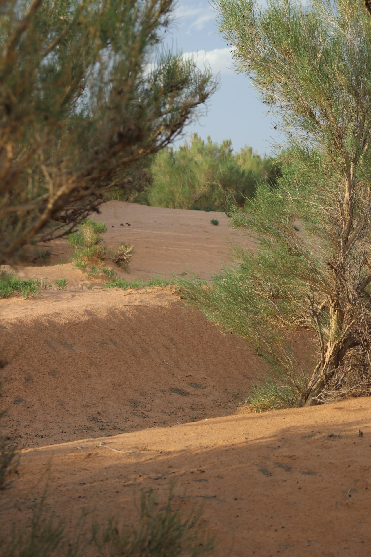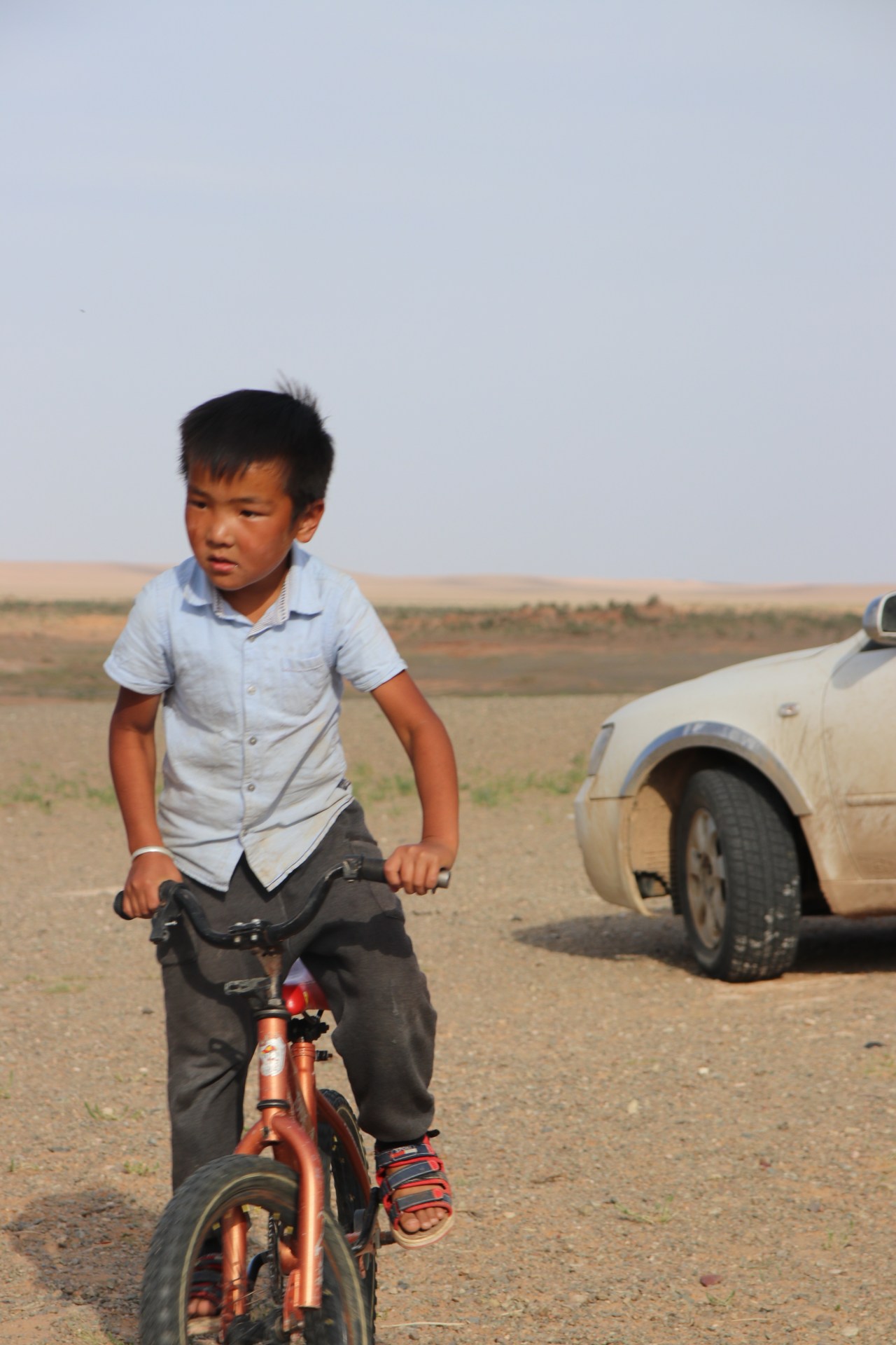 Nous campions dans les yourtes d’une famille de cinq personnes : trois enfants, deux filles et un garçon, le père, la mère. De cet endroit, on surplombe la région et on peut voir à deux kilomètres les forêts de saxaouls. Saxaouls qui sont des petits arbres de deux mètres maximum, qui serpentent sur le sol sablonneux et permettent aux nomades de s’en servir comme bois de chauffage.
