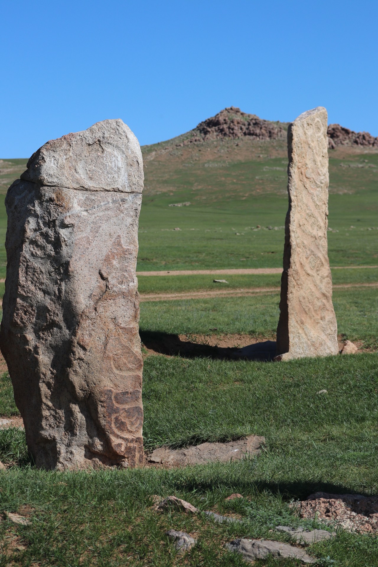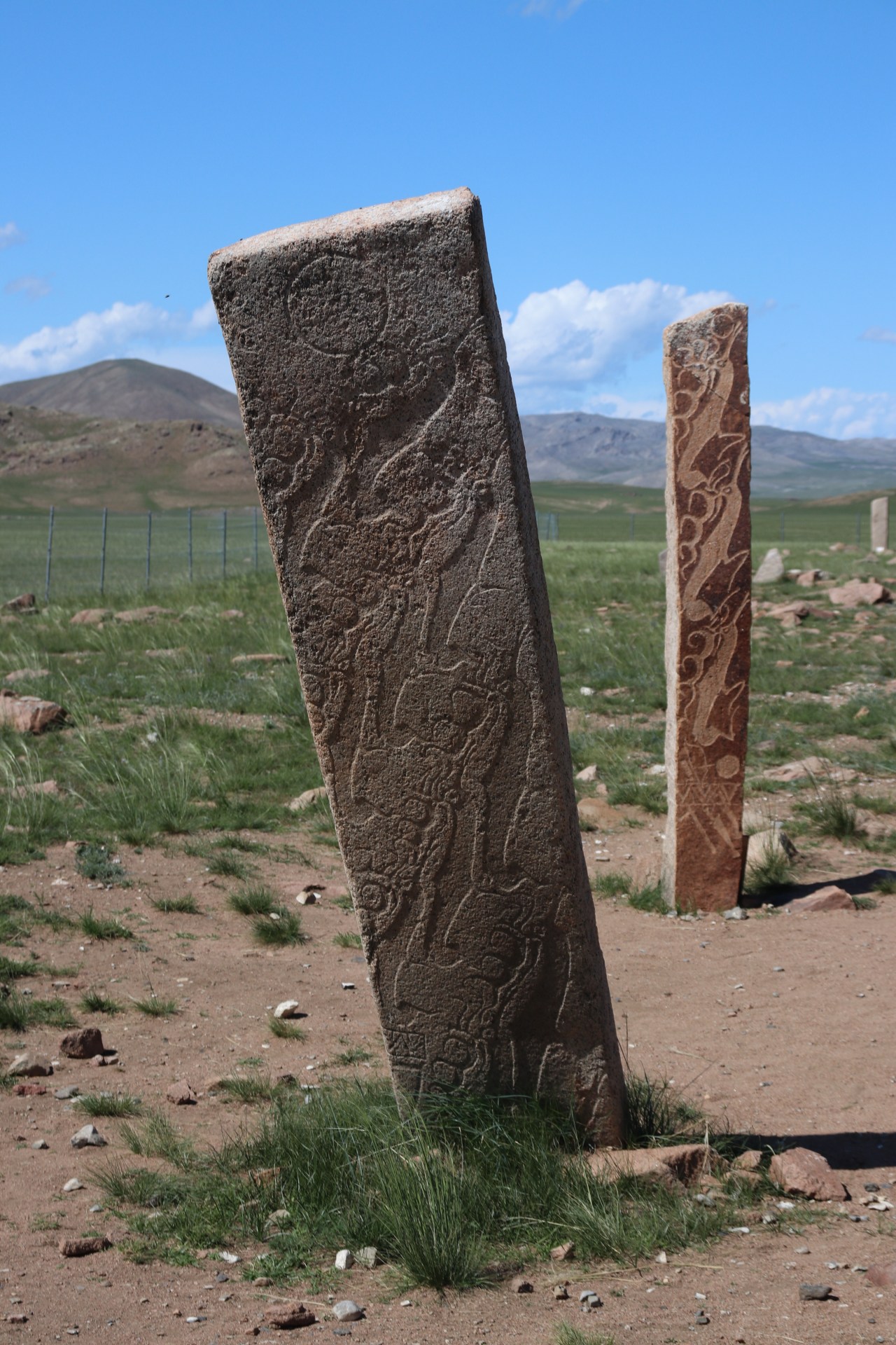 Ces pierres datent de l’âge du bronze et ont entre 4500 et 3000 ans. Comme les pétroglyphes de la vallée de la Tamir. Et les sculptures de pierre comme celles des cerfs. Elles sont de grande taille et font en général 3 mètres de haut avec la partie la plus fine orientée vers l’est.