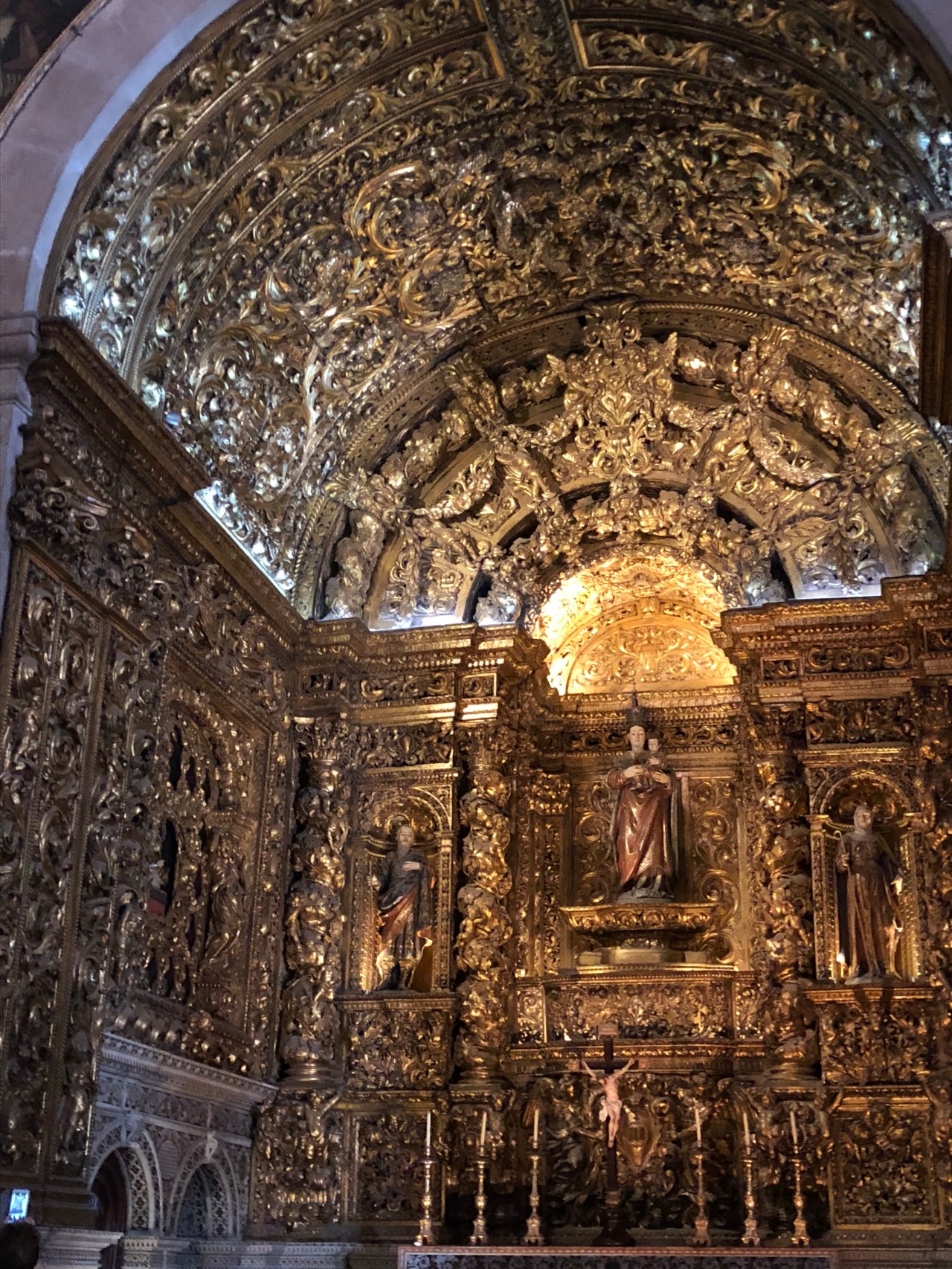 Ces chapelles sont d’un baroque représentant le 17 au 18eme siècle au Portugal. Chargées d’or, de sculptures dorées, de reliquaires et d’images de la Vierge, d’azulejos et de magnifique bois de jacaranda.