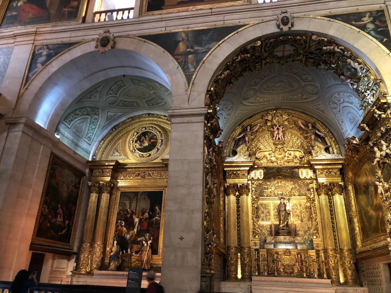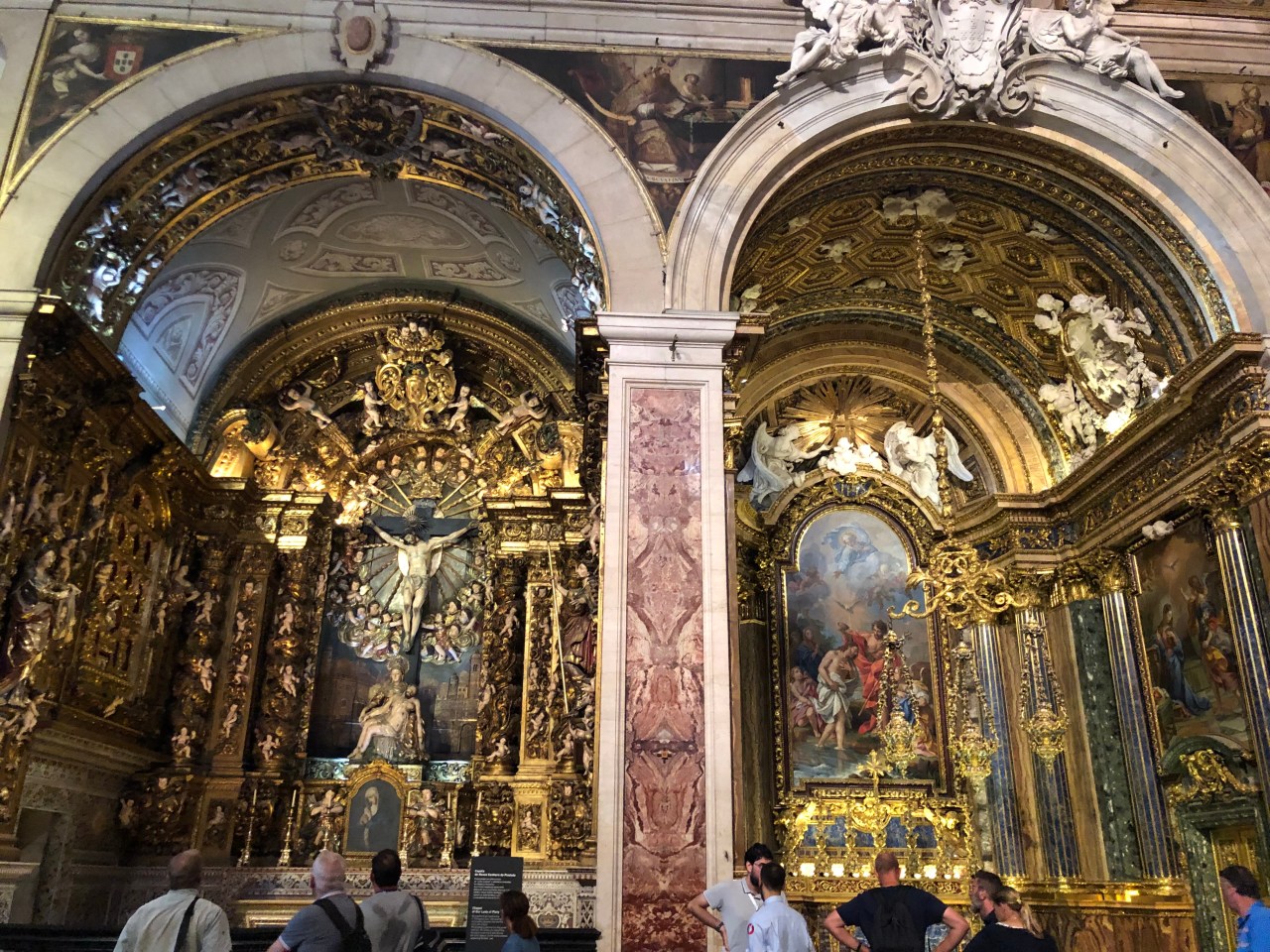 Montée dans le Bairro Alto et en prenant du mirador San Pedro de Alcantara vous passez devant l’église Sao Roque et la place Trinidade Coelho. Devant vous se tient une façade blanche sans fard ni décoration de l’église Sao Roque. Pas de fanfreluches, pas de décorum rien qui ne vous prépare aux fastes délirants de l’intérieur de l’église.
