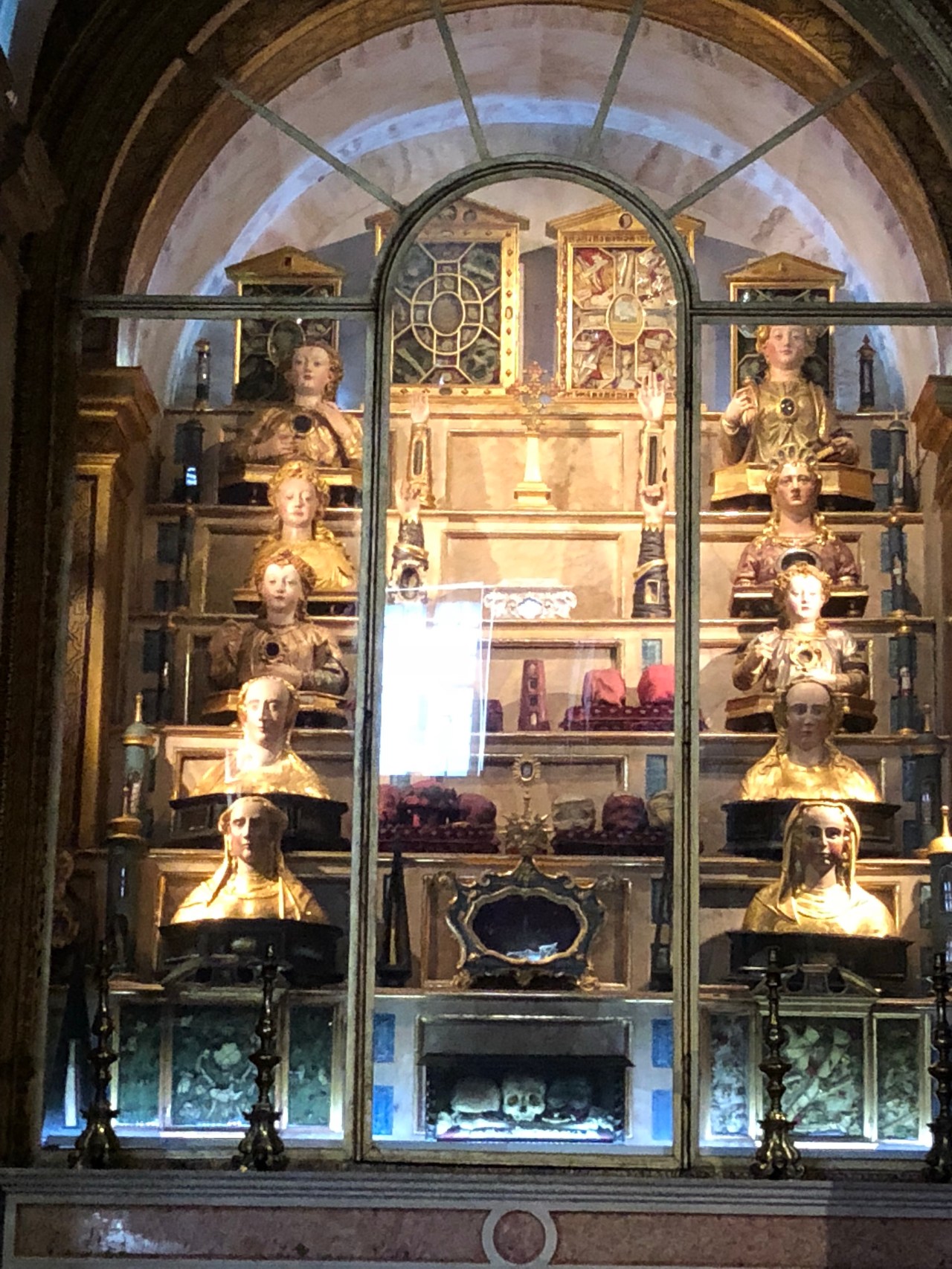 Sont aussi exposées toute une collection de reliques sur les côtés de l’autel.