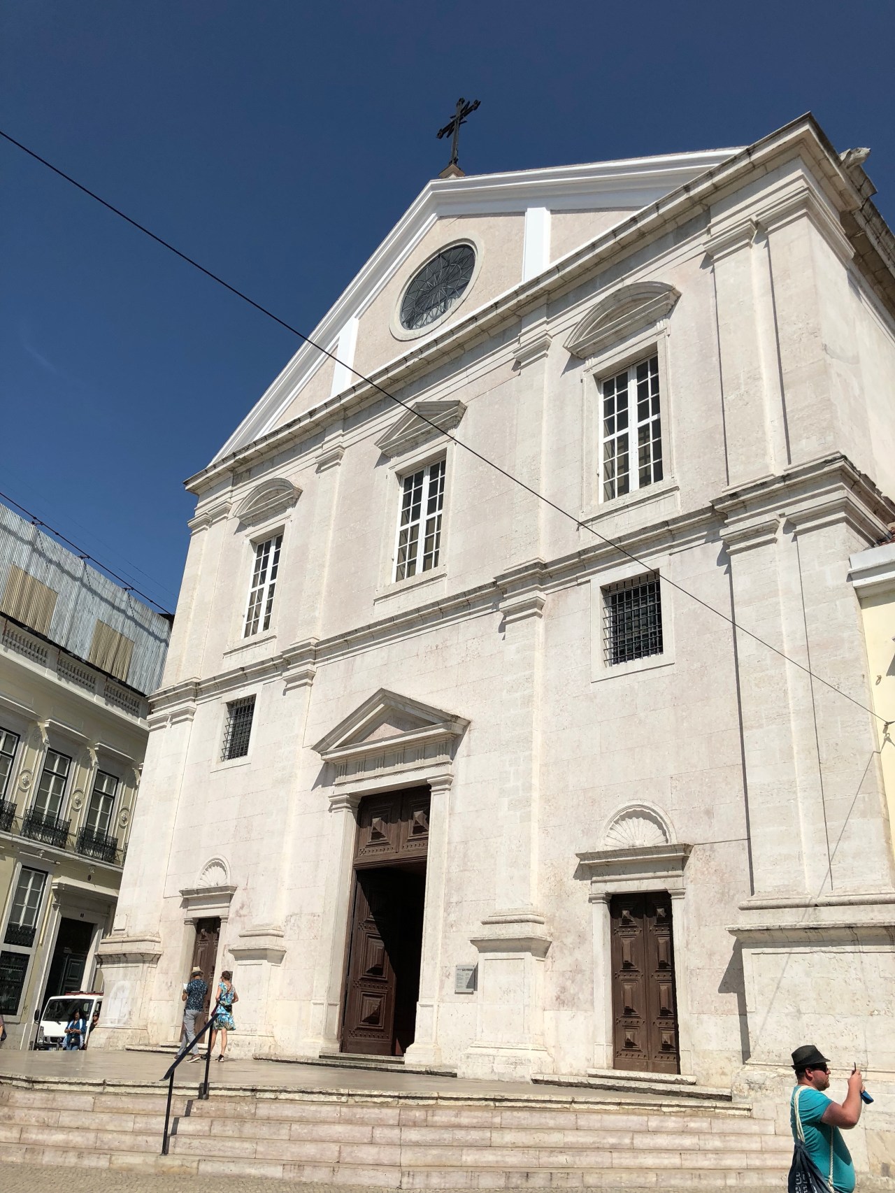 Un peu d’histoire : l’église a été construite et surtout finalisée en 1565 par Filippo Terzi. La façade est d’une rigueur géométrique qui contraste avec la richesse intérieure. Elle est construite sur un cimetière où sont enterrés les malheureux atteints de la peste. San Roque ayant lutté contre la peste et réalisé un certain nombre de miracles contre cette maladie. L’église a été construite sur le site de l’ancienne chapelle manuéline dans la seconde moitié du XVIe siècle, et Afonso Alvares en était l’architecte, maître d’œuvre de Jean III.