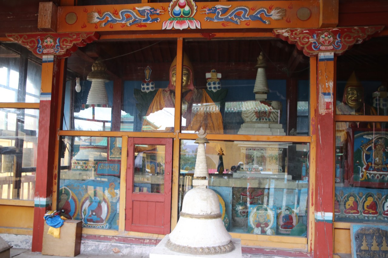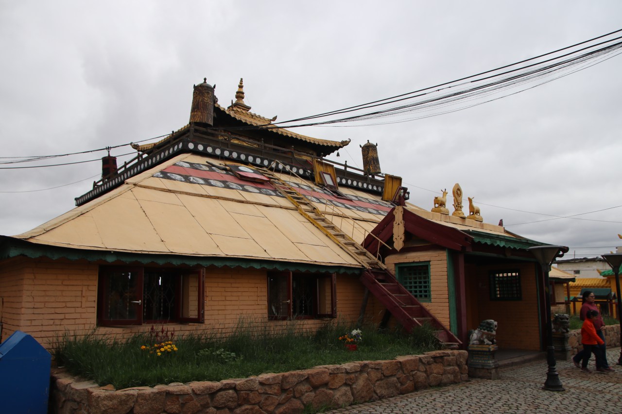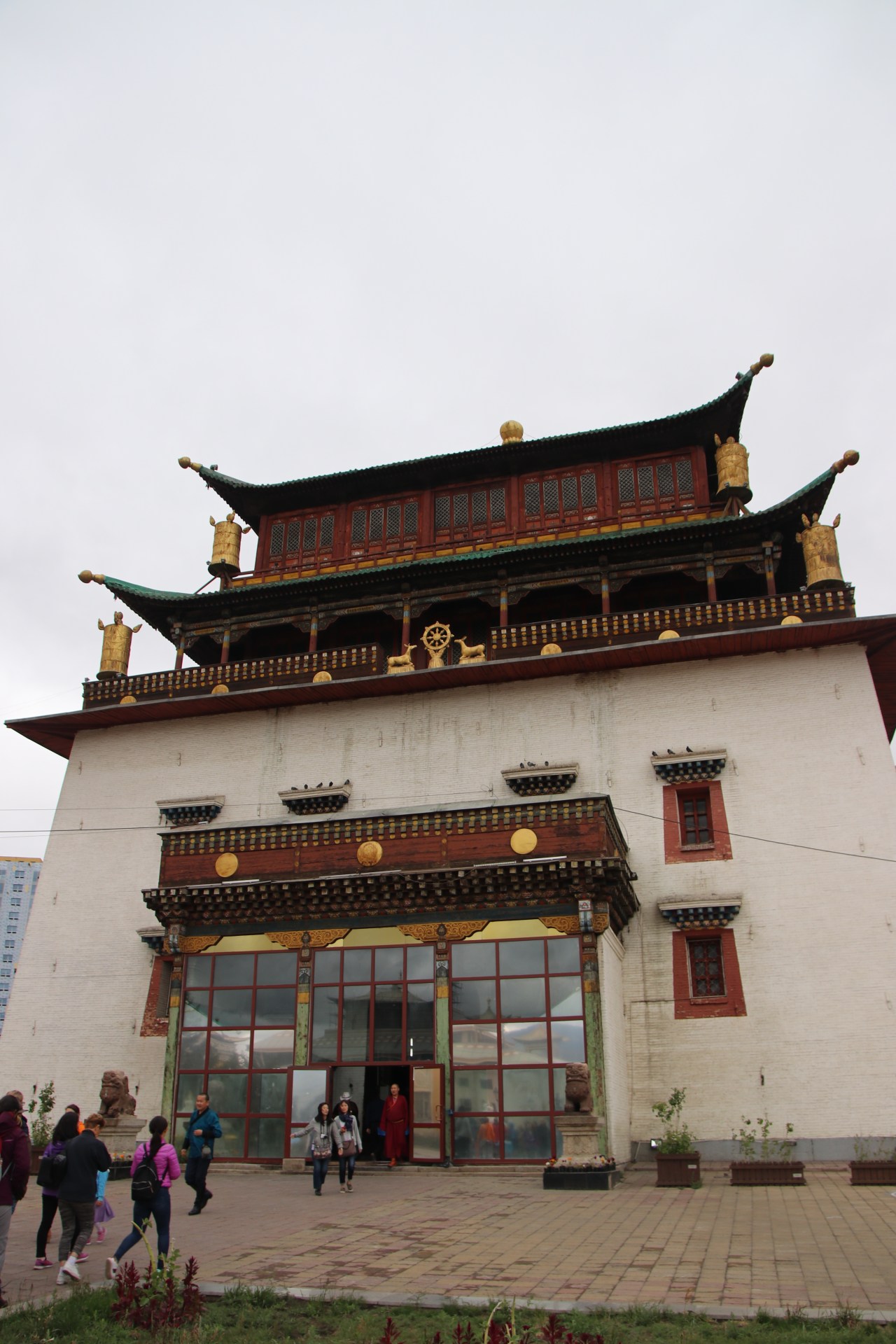 Puis nous filons dans le temple dédié à Megzid Janraising, le boddisattva * de la compassion. Ce temple est tout blanc et est le symbole de l’indépendance de la Mongolie. Des centaines de représentations d’ayush, le Bouddha de la longévité, ornent le temple et entourent la magnifique statue d’or de Megzid Janraising.