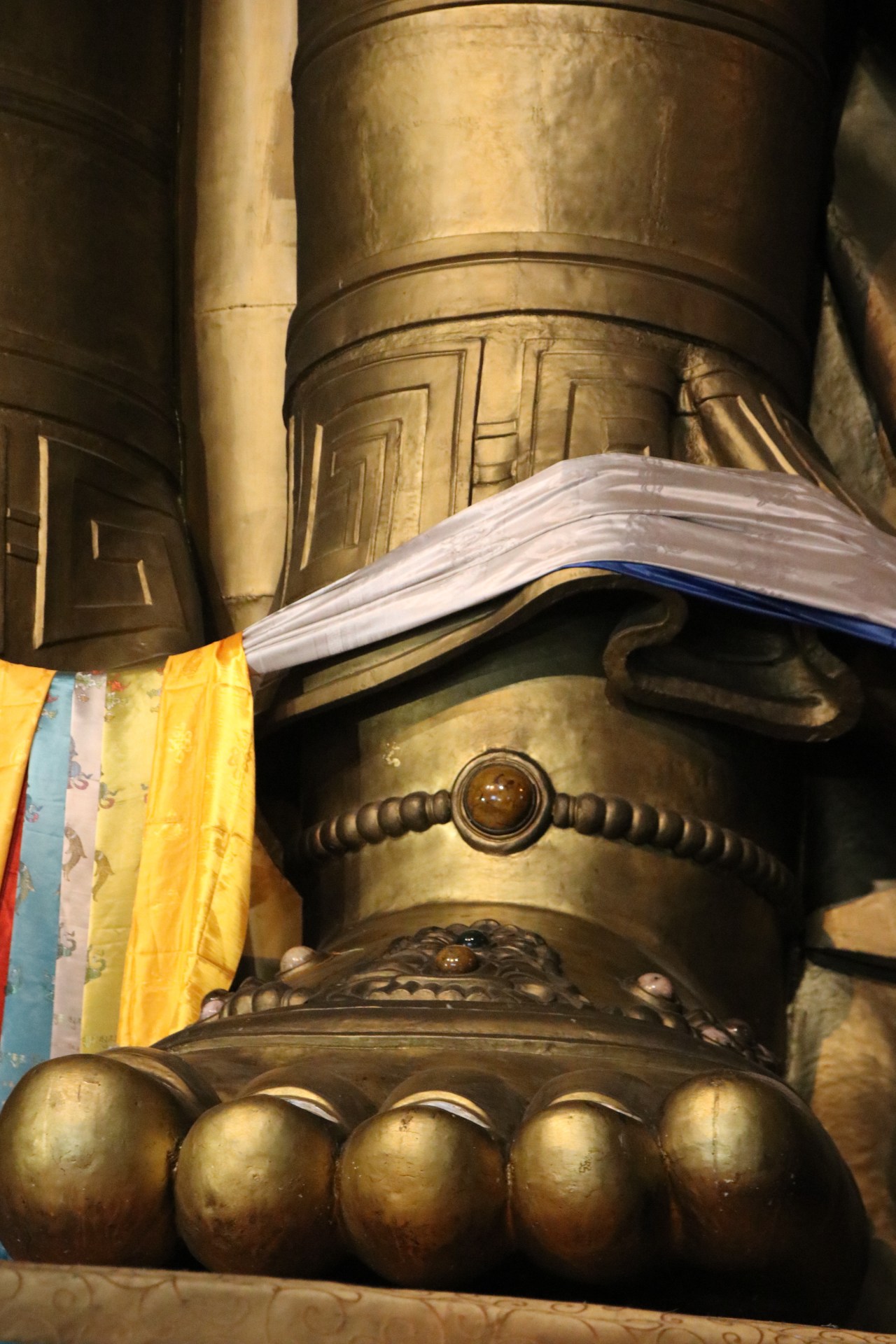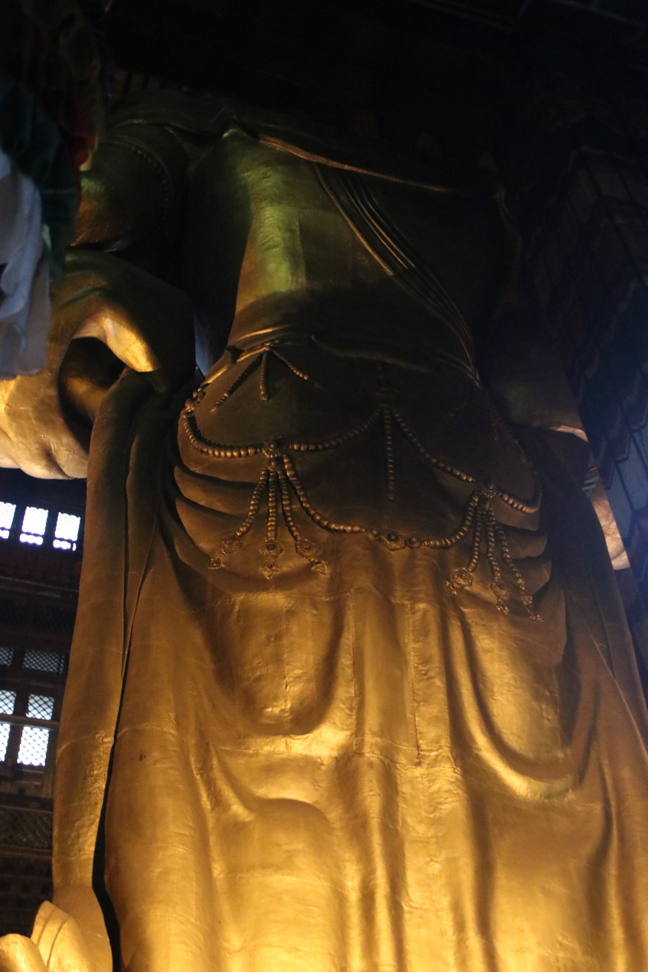 L’endroit est juste magnifique. Bouddha vous regarde de toute sa hauteur. Son visage respire toute la bonté du monde et le repos éternel. Ses pieds donnent envie d’être touchés ainsi que ses chevilles ornées de pierres précieuses. La robe de son tissu est finement ciselée. Et lorsque l’on passe dans le dos de Bouddha on peut voir cette robe si fine dont les détails sont impressionnants.