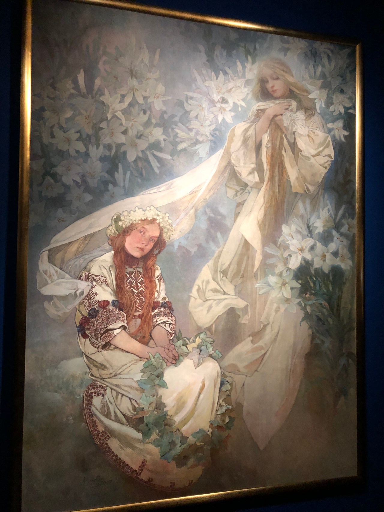 J’ai flashé sur des œuvres plus mystiques comme « Vision » ou d’autres. Un mélange du Christ sur la croix ou de la Sainte Vierge dans les couleurs bleutées où Mucha représente les « forces mystérieuses » qui guident nos vies.