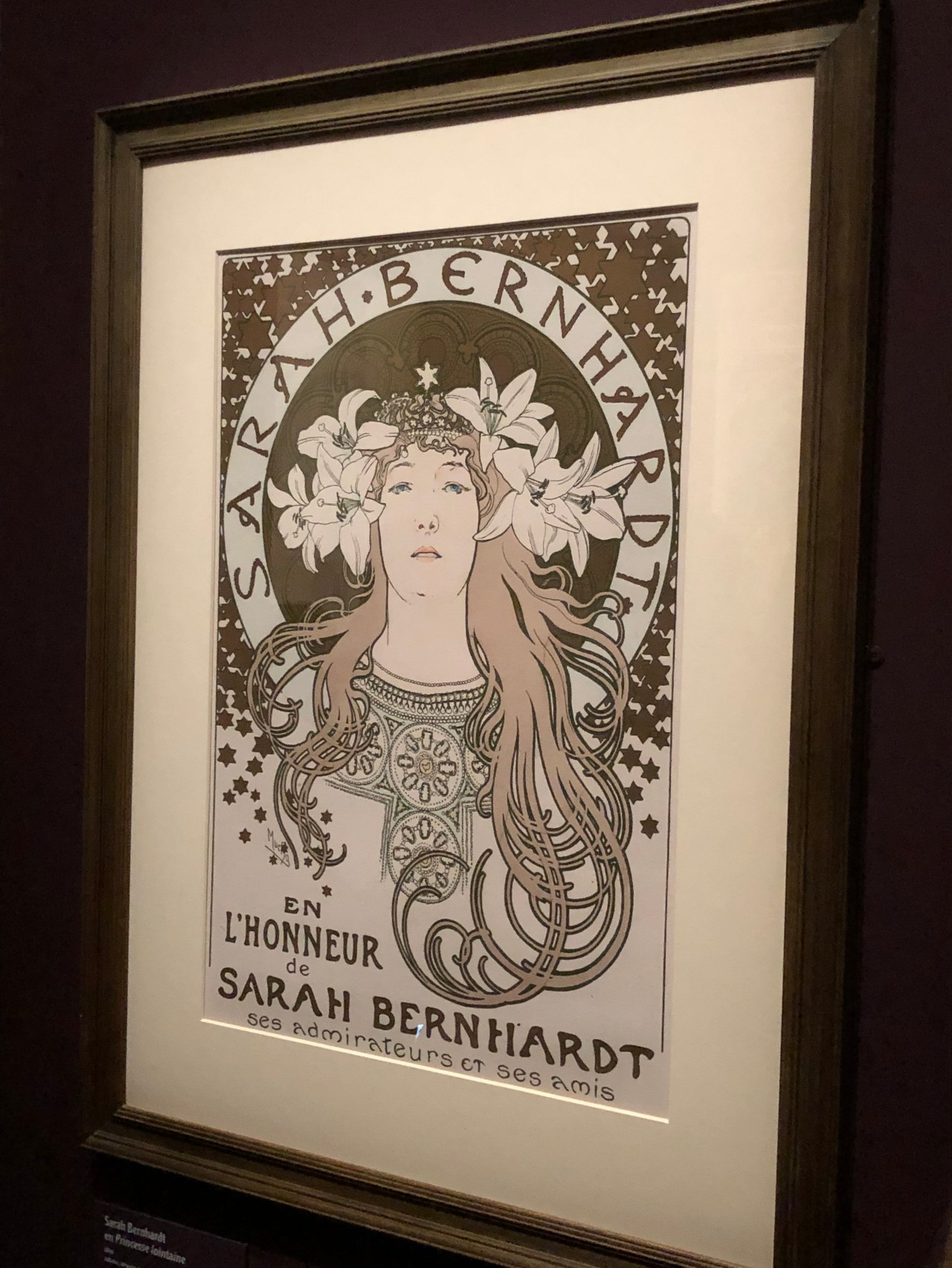 Beaucoup de monde cet après-midi de novembre pour découvrir l’œuvre de Mucha si connue pour ses aspects cosmopolites représentant Sarah Bernard et les affiches de théâtre. Il faut dire que Mucha est très connu pour toutes les affiches qu’il a réalisé pour des maisons de champagne ou de biscuits. Mucha est connu pour cela.