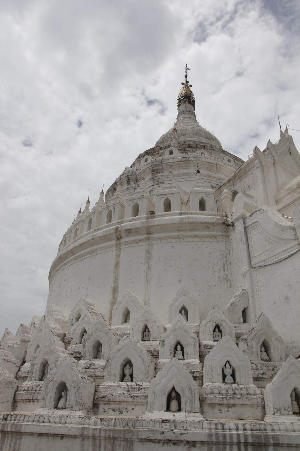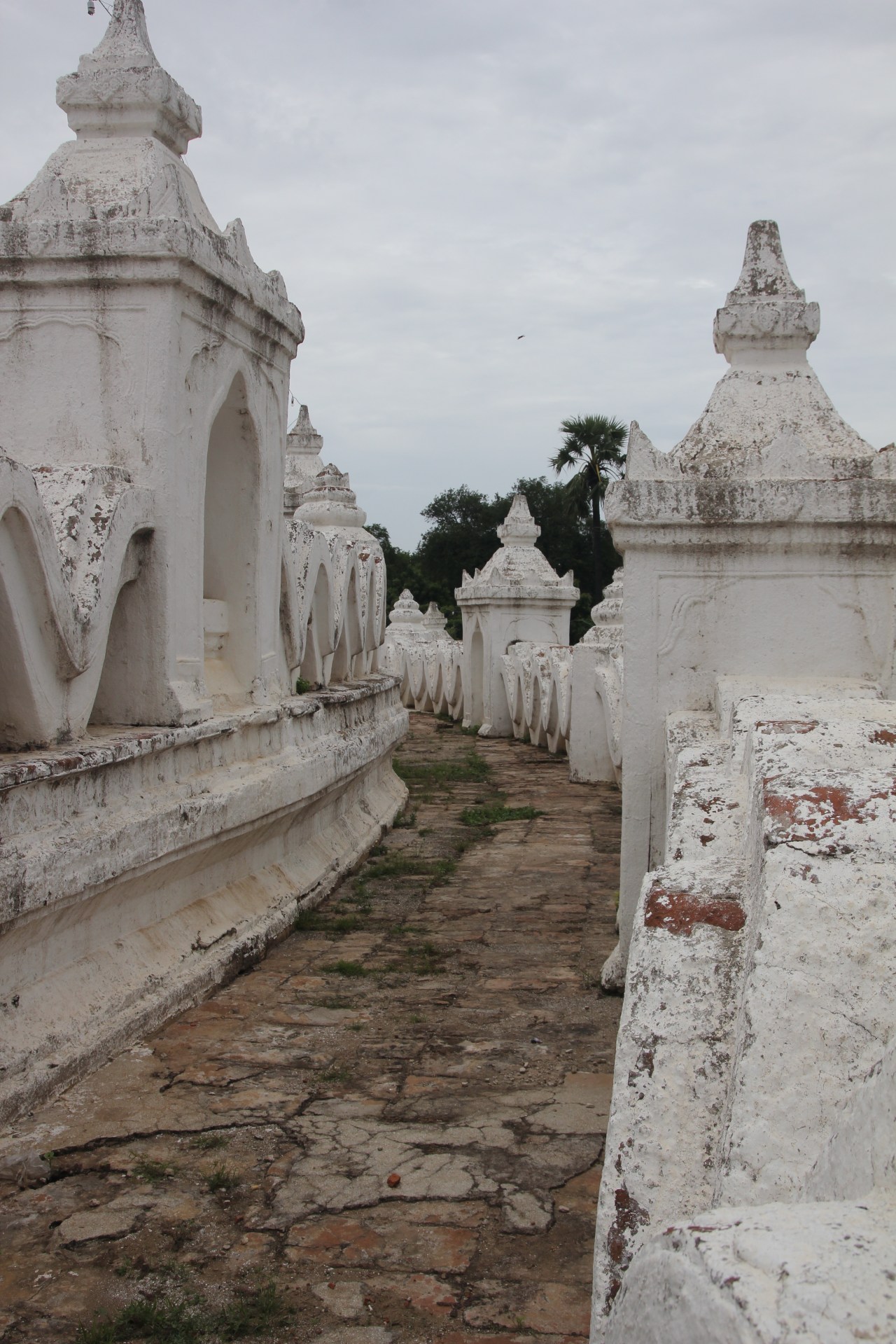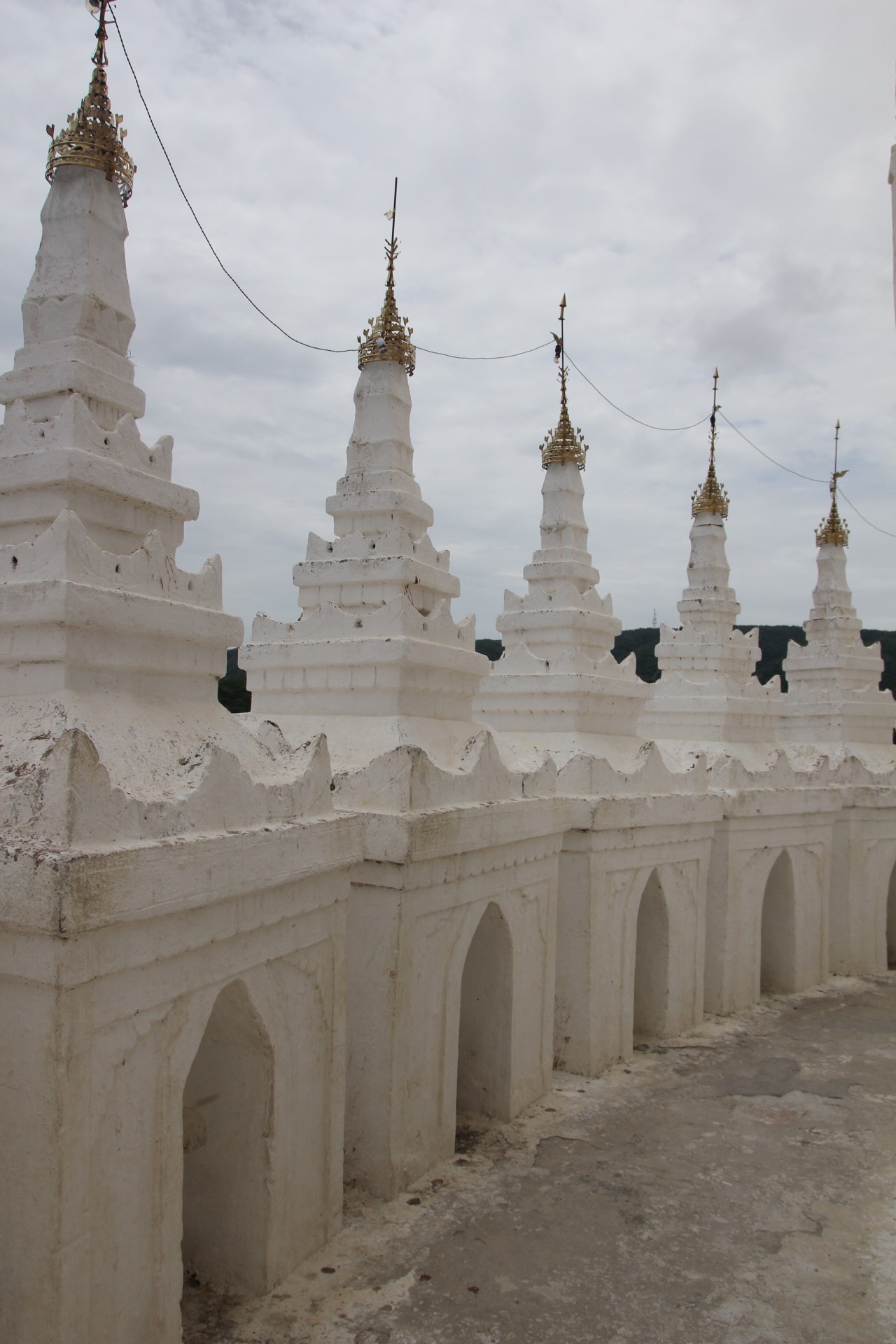 Un peu d’histoire : la pagode Hsinbyume fut édifiée en 1816 par Bagyidam, le roi la voulut très belle, à la mesure du chagrin que lui provoqua la mort de sa première femme (Princesse Hsinbyume veut dire princesse éléphant blanc), qui porte son nom – répétition de l’histoire du Taj Mahal en Inde.