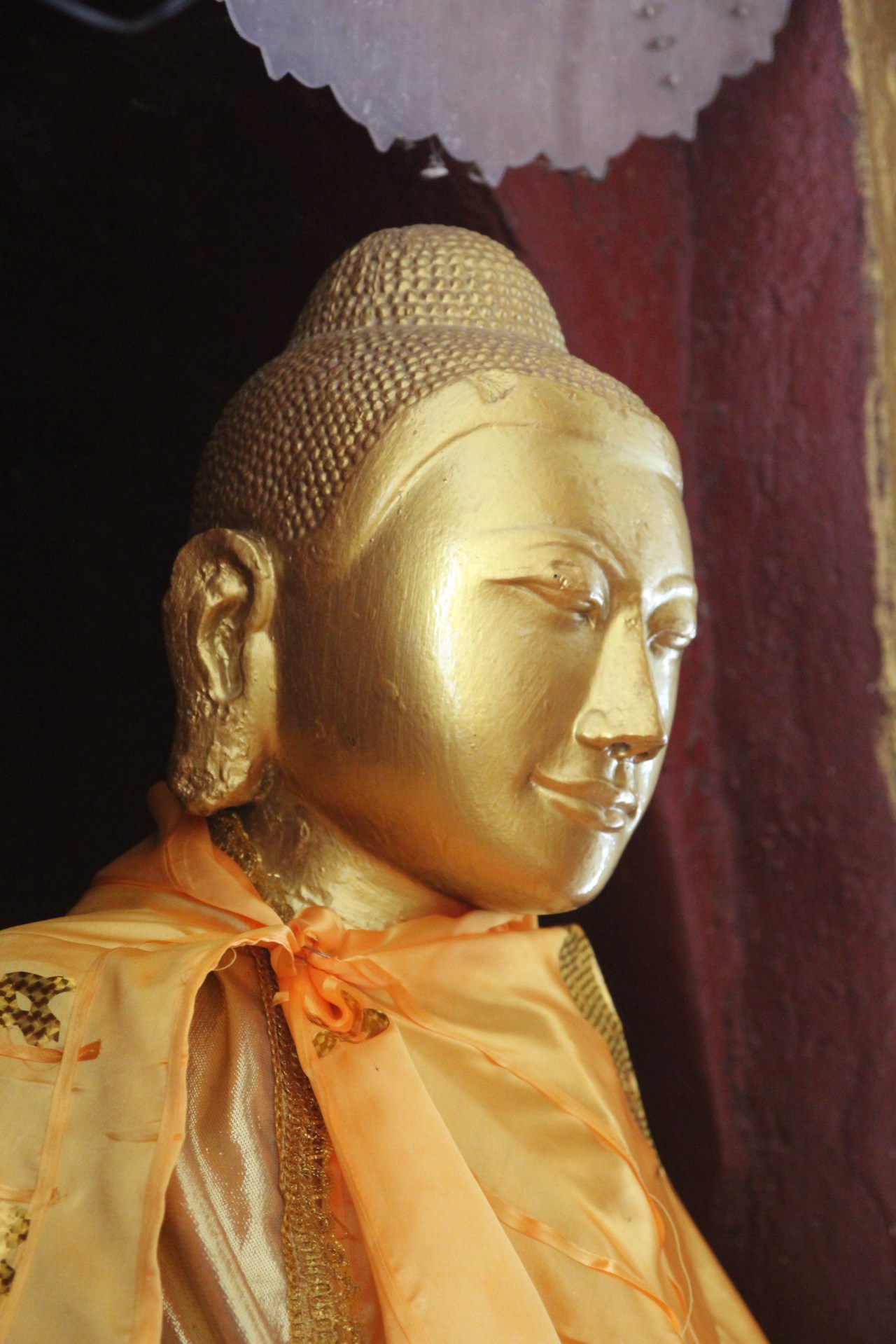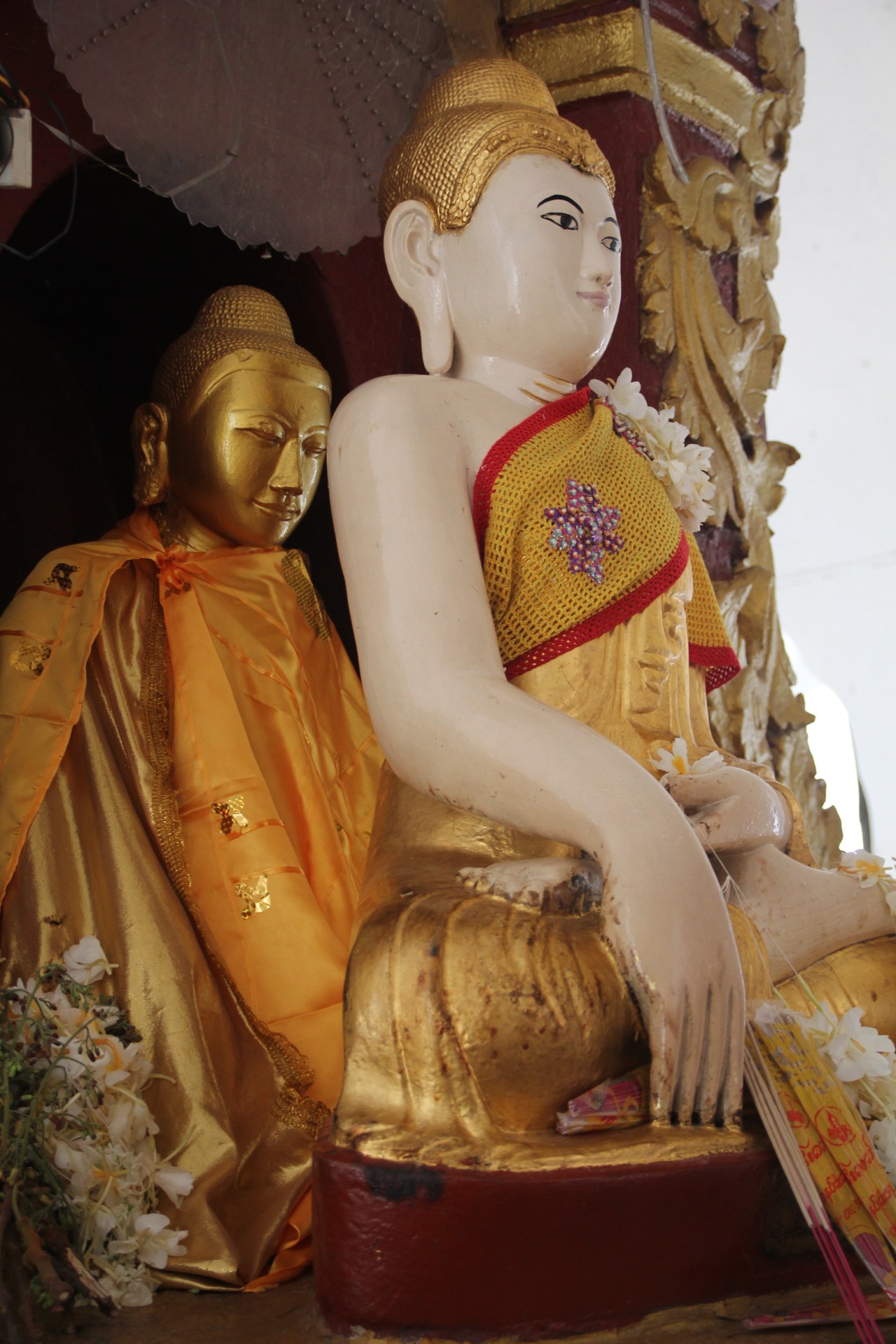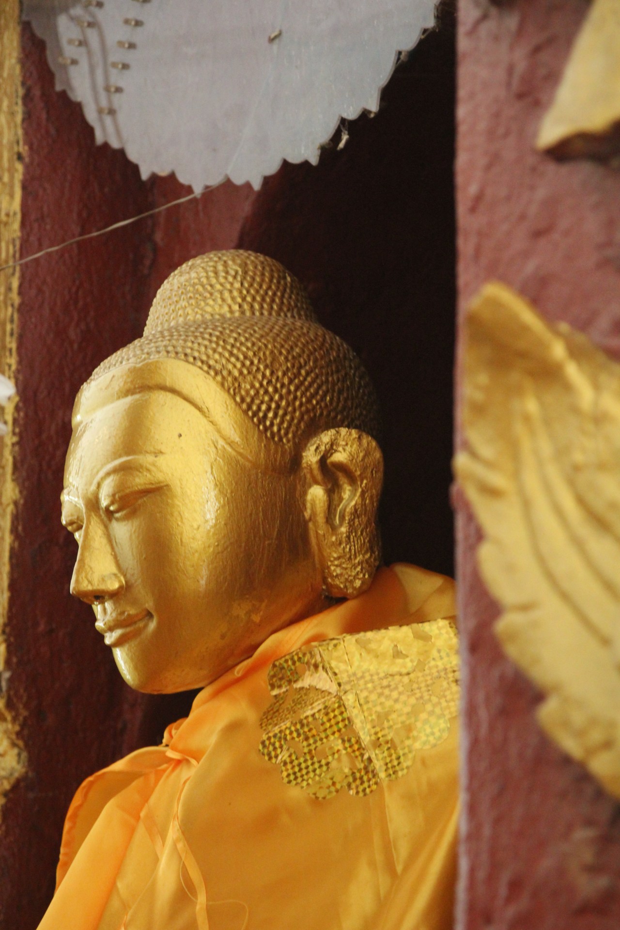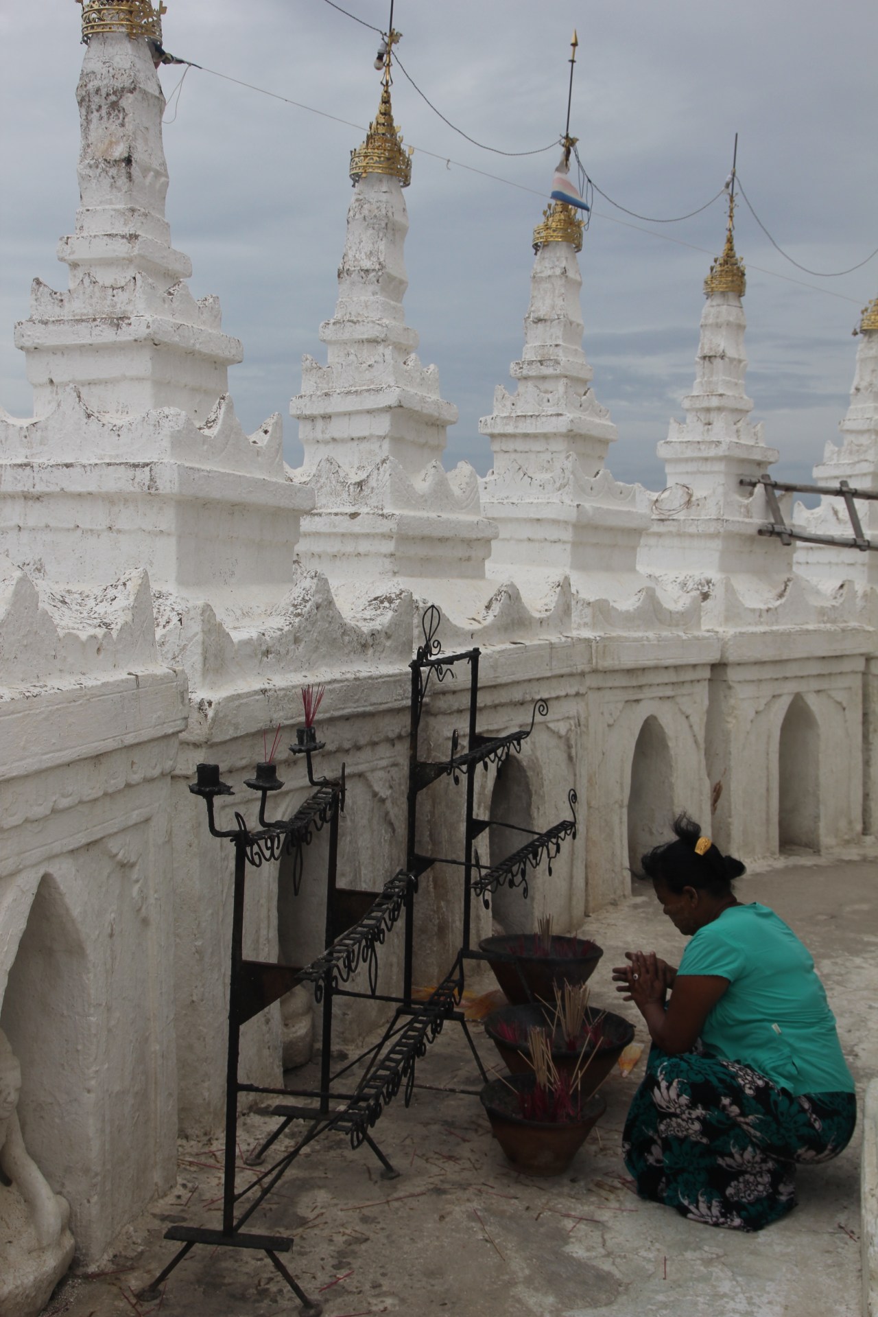 Nous avons repris notre chemin en faisant le tour des statues de Bouddha, en regardant les birmans prier, faire des offrandes ou allumer des bâtons d’encens. J’ai regardé avec plaisir ce père expliquant à sa fille le rituel des encens et lui montrant comment allumer les bâtons d’encens. Une femme plus haut faisait ses prières et honorait ses dieux.