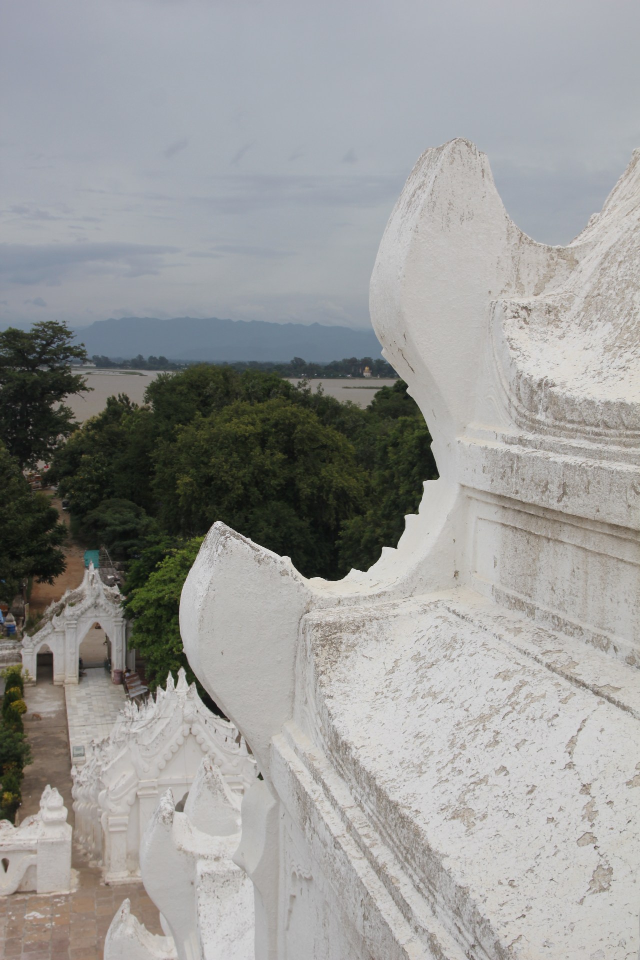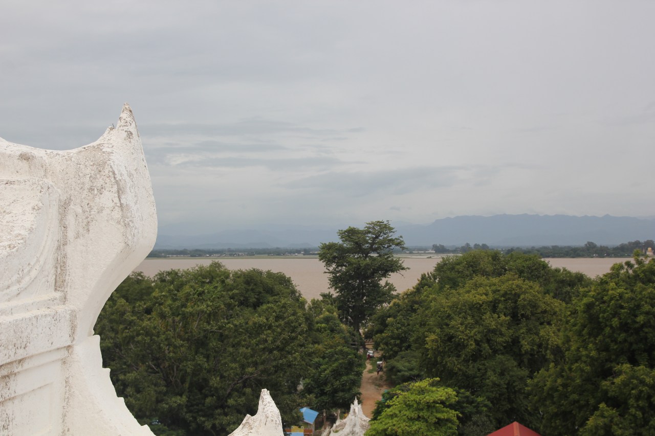 Et de l’étage le plus élevée la plus belle vue et le plus beau panorama s’offrait à nous sur le fleuve mais surtout sur la pagode de Mingun. J’étais tellement captivée par la beauté de l’endroit que j’ai fait deux fois le tour. Je m’y suis sentie calme, apaisée, chez moi.