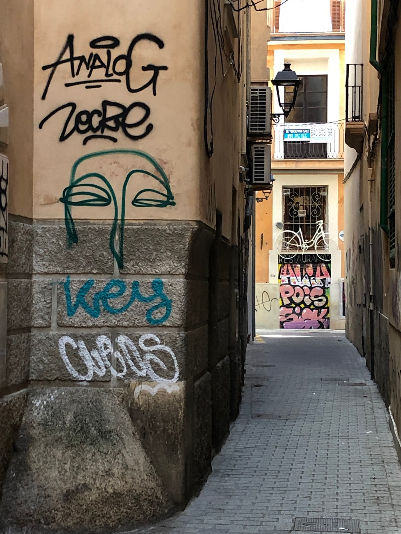 Me baladant dans le vieux quartier de Palma, proche de la cathédrale, nous avons croisé des œuvres de street-art.