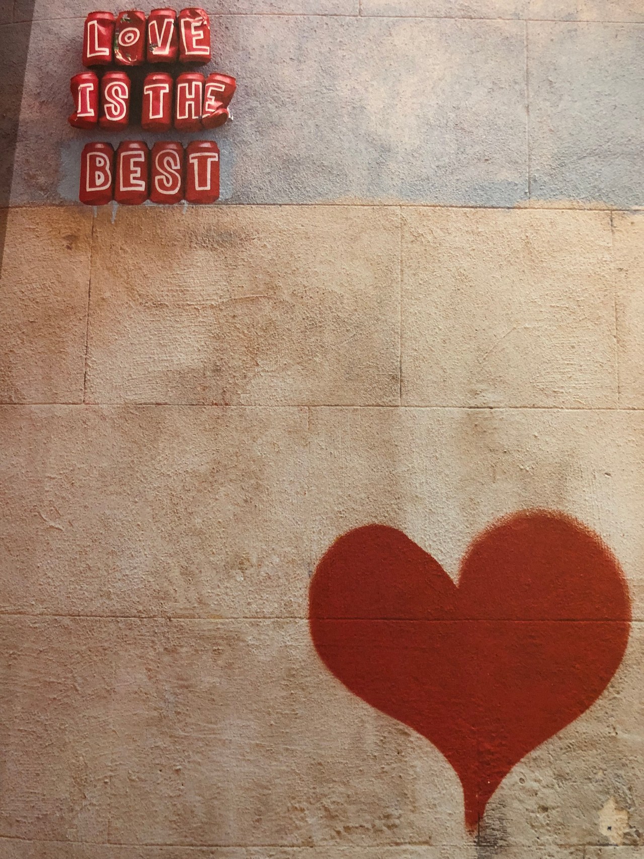 Dans un autre style des ronds avec des textes sont collés aux murs : « tu me tas coses que jo no se explicar » ! ou bien « gracias por el tiempo que me das » ou encore « love is the best ».
