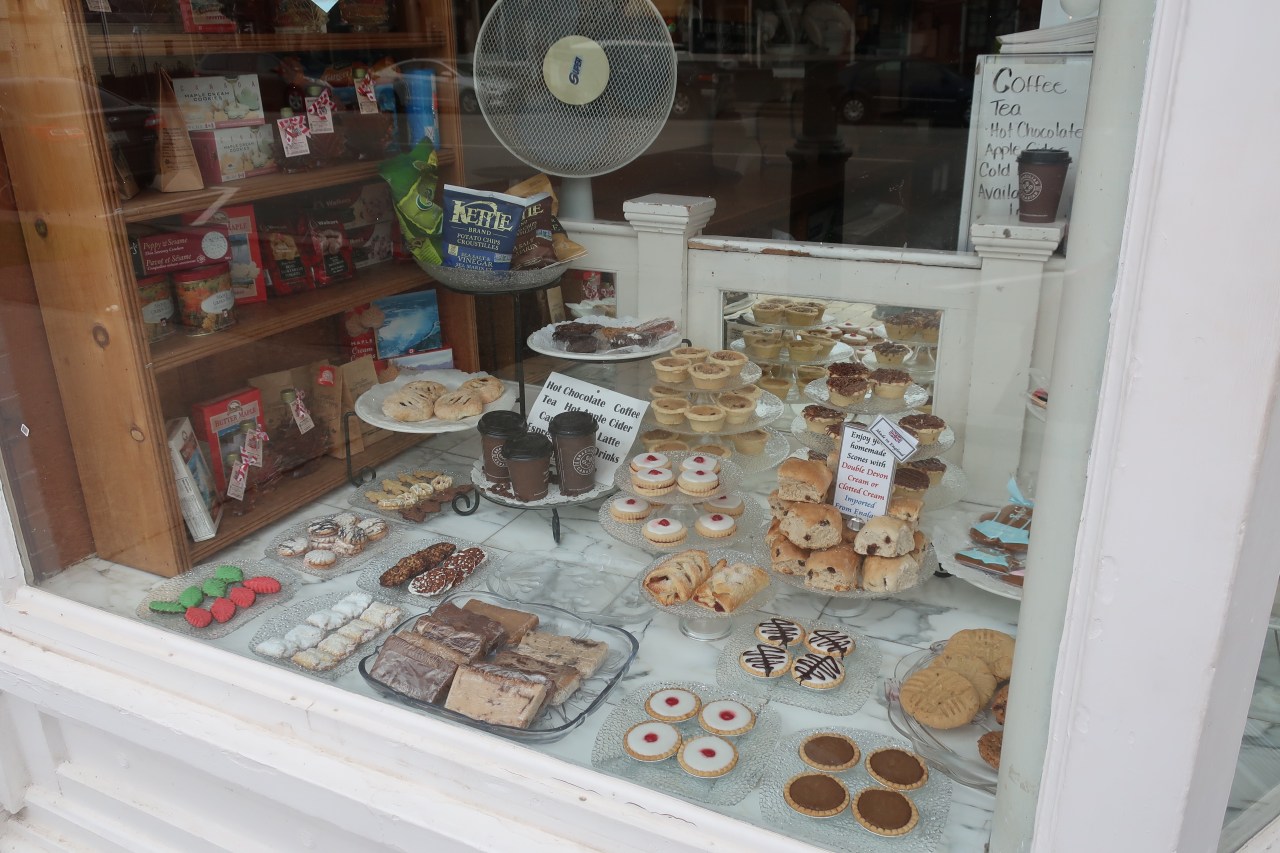 Puis ce fut le tour des pâtisseries qui donnaient au passant l’envie d’aller goûter aux sucreries, scones en tout genre, gâteaux au chocolat, marbre au chocolat, j’en passe et des meilleurs. La devanture de la pâtisserie offrait aussi tous les types de tasses en porcelaine qui pouvaient exister dans ce magasin. J’ai eu l’impression de me retrouver enfant avec les porcelaines que ma maman avait gardé de son enfance et avec lesquelles elle jouait avec ses poupées et avec lesquelles j’avais moi-même jouées. En un mot un vrai moment de joie et de souvenirs attachants.