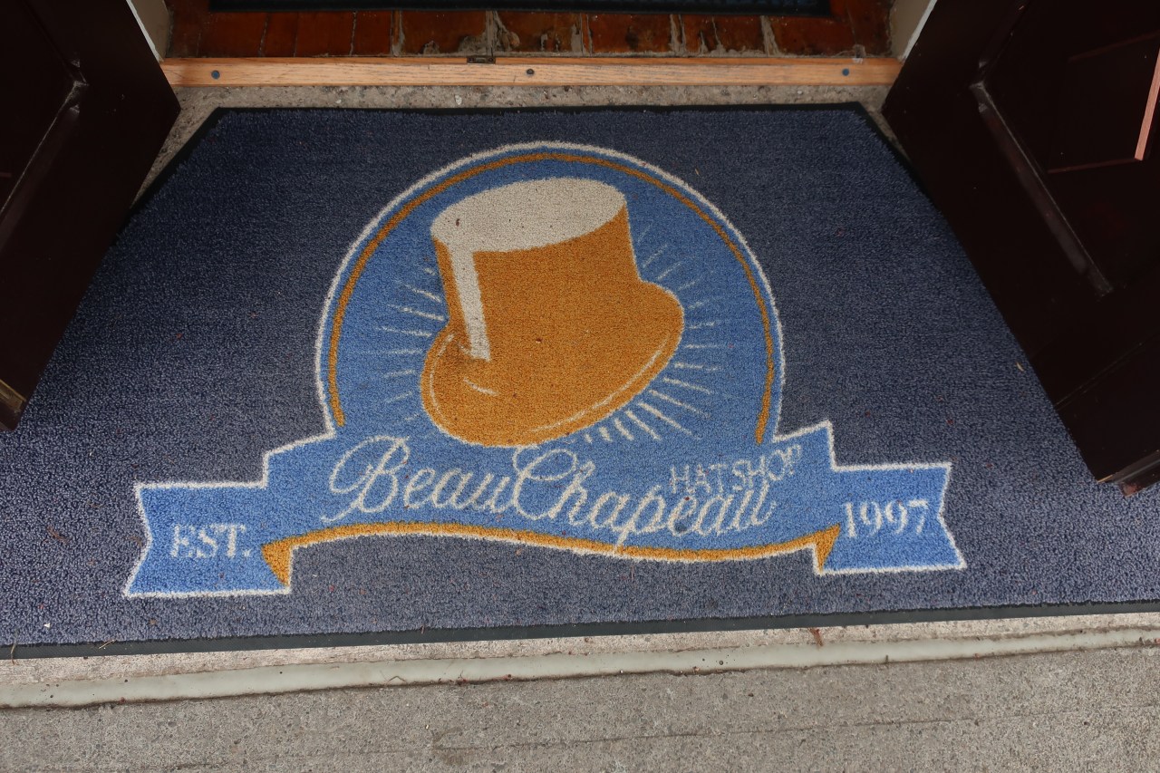 La première à avoir retenu mon attention fut celles du chapelier avec ses modèles en cloche qui rappelaient les années 1930. Des mannequins présentaient les chapeaux. Et surtout le tapis pour essuyer ses pieds marquait « au beau chapeau ». Maison qui doit être connue depuis 1997.