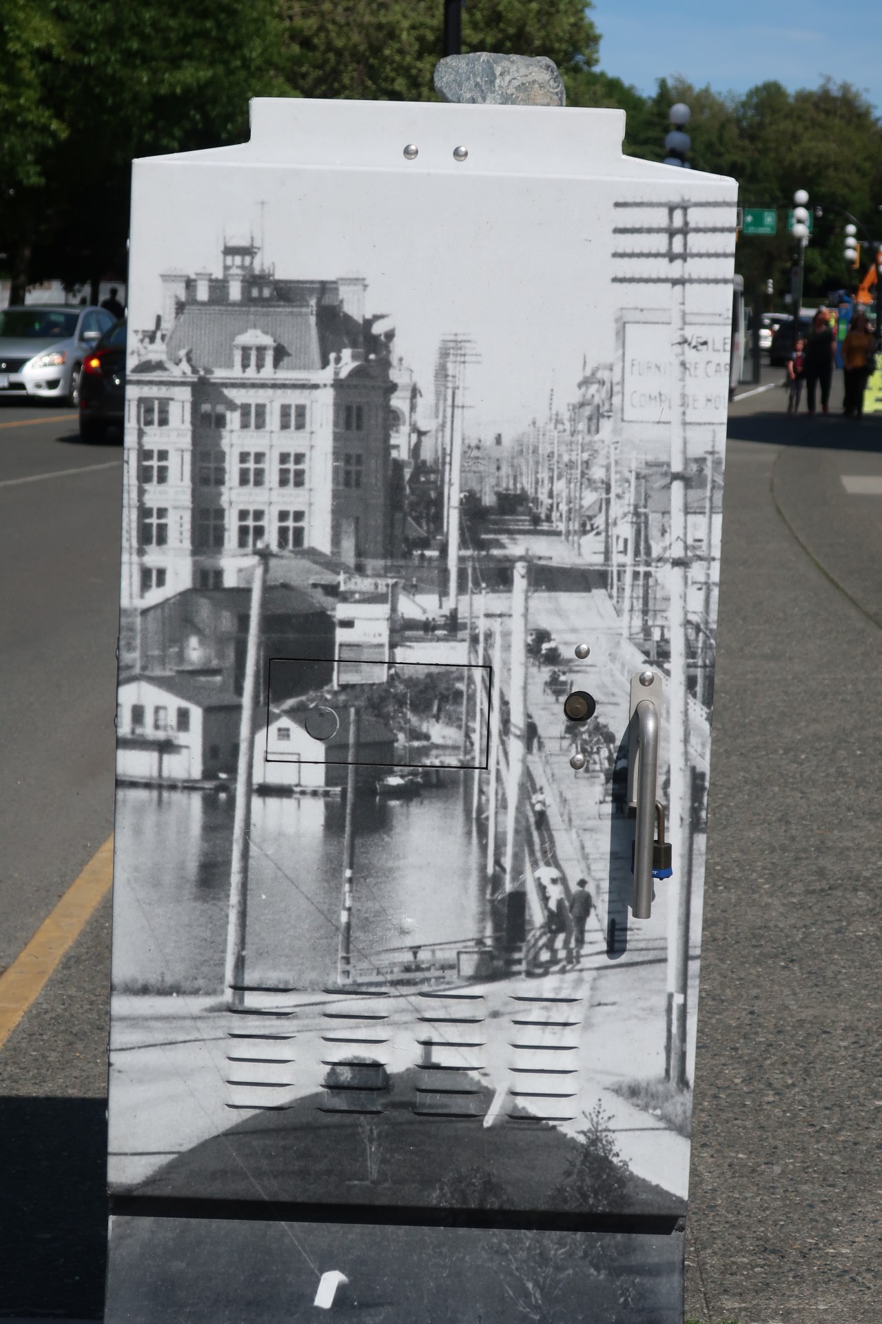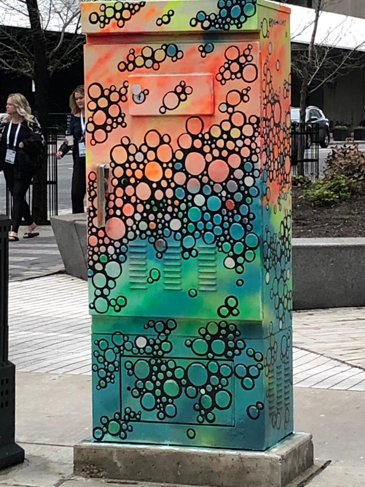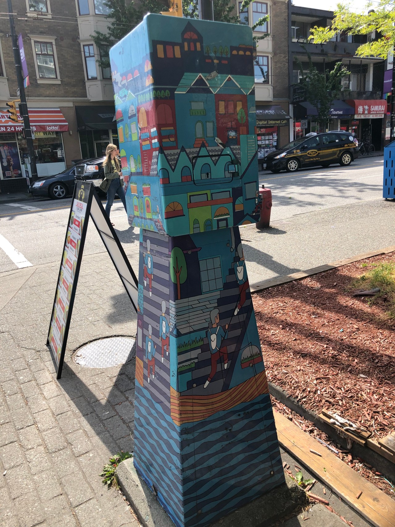 En grosse majorité les boitiers électriques se trouvant dans les rues au Canada sont un enchantement pour moi. Ils sont en général décorés et cela donne lieu à des œuvres d’art à ciel ouvert.