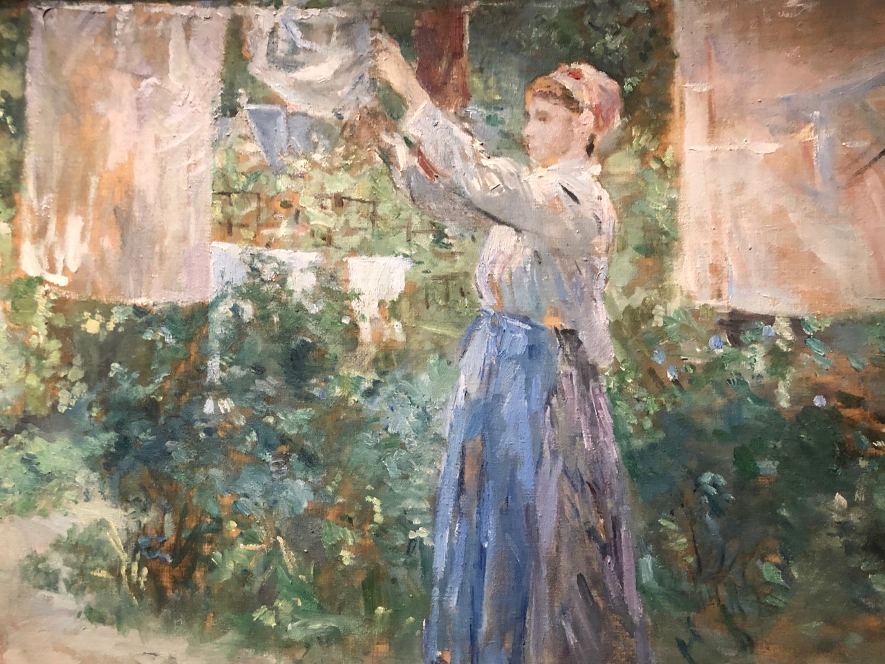 Et puis cette femme qui étend le linge ou le récupère une fois séché. On peut admirer la gestuelle des bras.