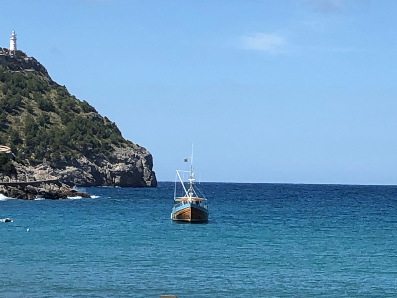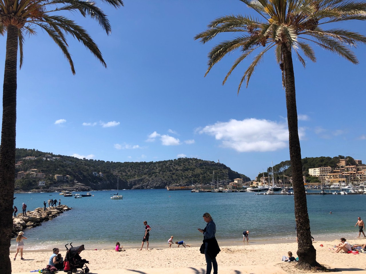 En arrivant sur la baie de Soller on découvre toute une rangée de palmiers dattiers ou pas. On comprend que nous sommes dans le sud et que la chaleur est loin. Comme cela est agréable. Et puis on touche le bout du voyage : la mer.