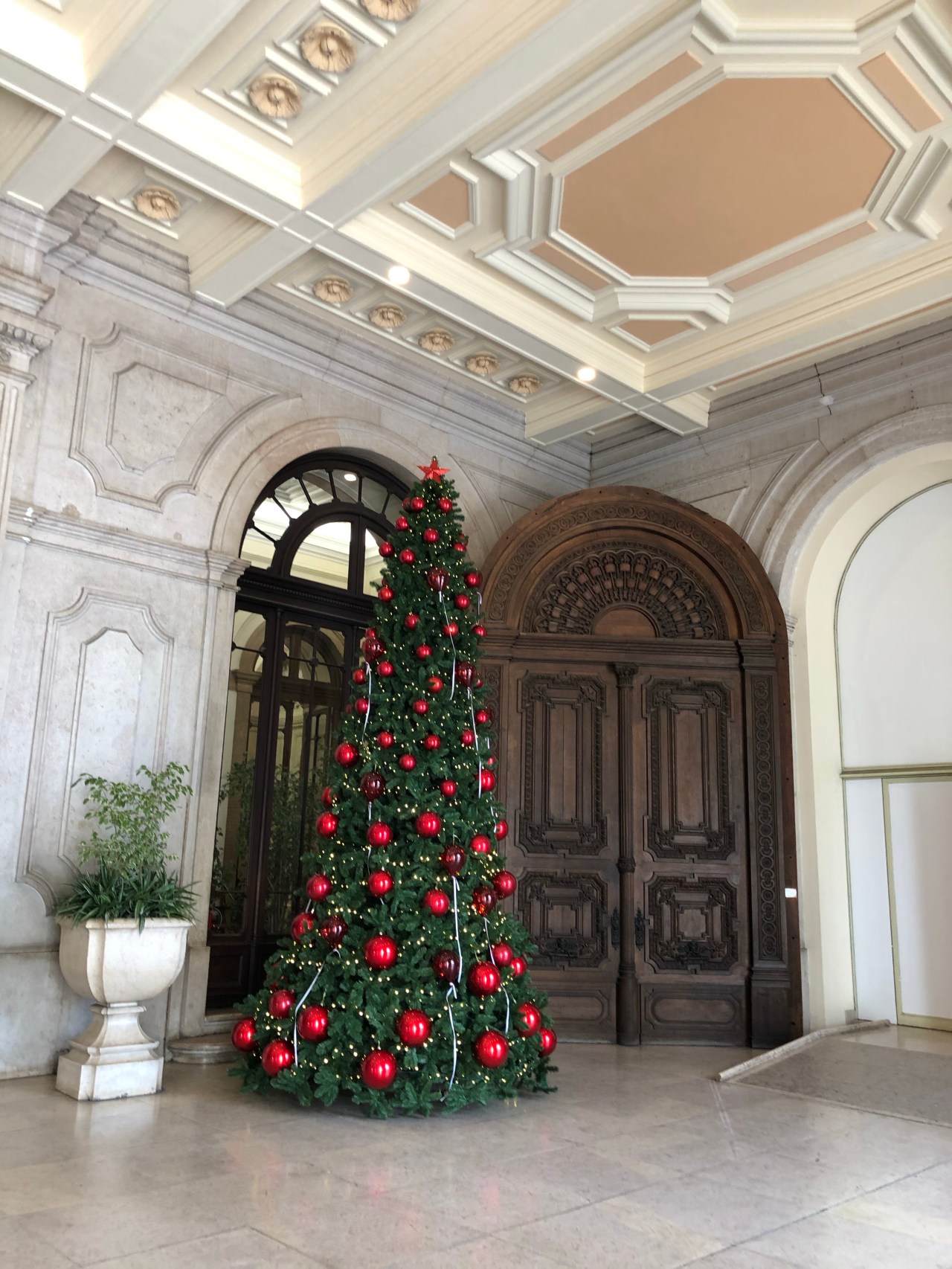 Noël n’est pas encore là mais il commence à se faire présent à Lisbonne. Les arbres de Noël naissent et s’enturbannent de décorations multiples et variées comme sur la place du Commerce ou bien dans la mairie de Lisbonne. Boules rouges et guirlandes jaunes dorées paradent et sont au garde à vous.