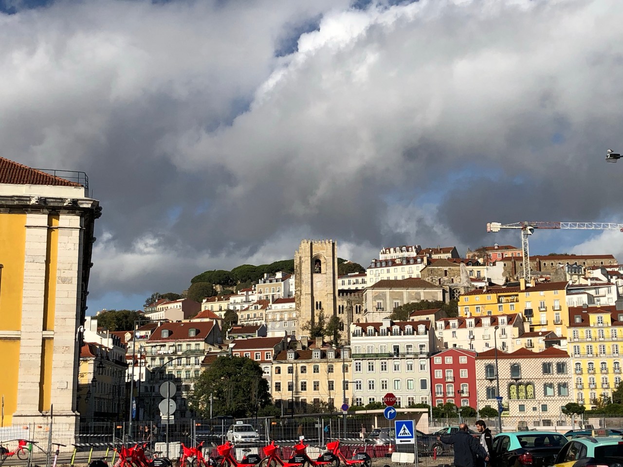 La vue sur Lisbonne est toujours un émerveillement entre le château Saint George, la place du Commerce tout de jaune vêtue, la place de l’arsenal toute de bleue et dans le fond la cathédrale Saint Antoine de Sé qui tient son rang, toute droite et impérieuse voire imposante.