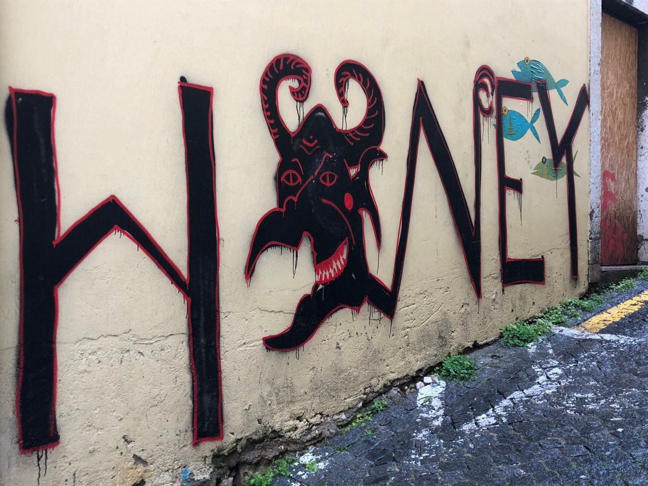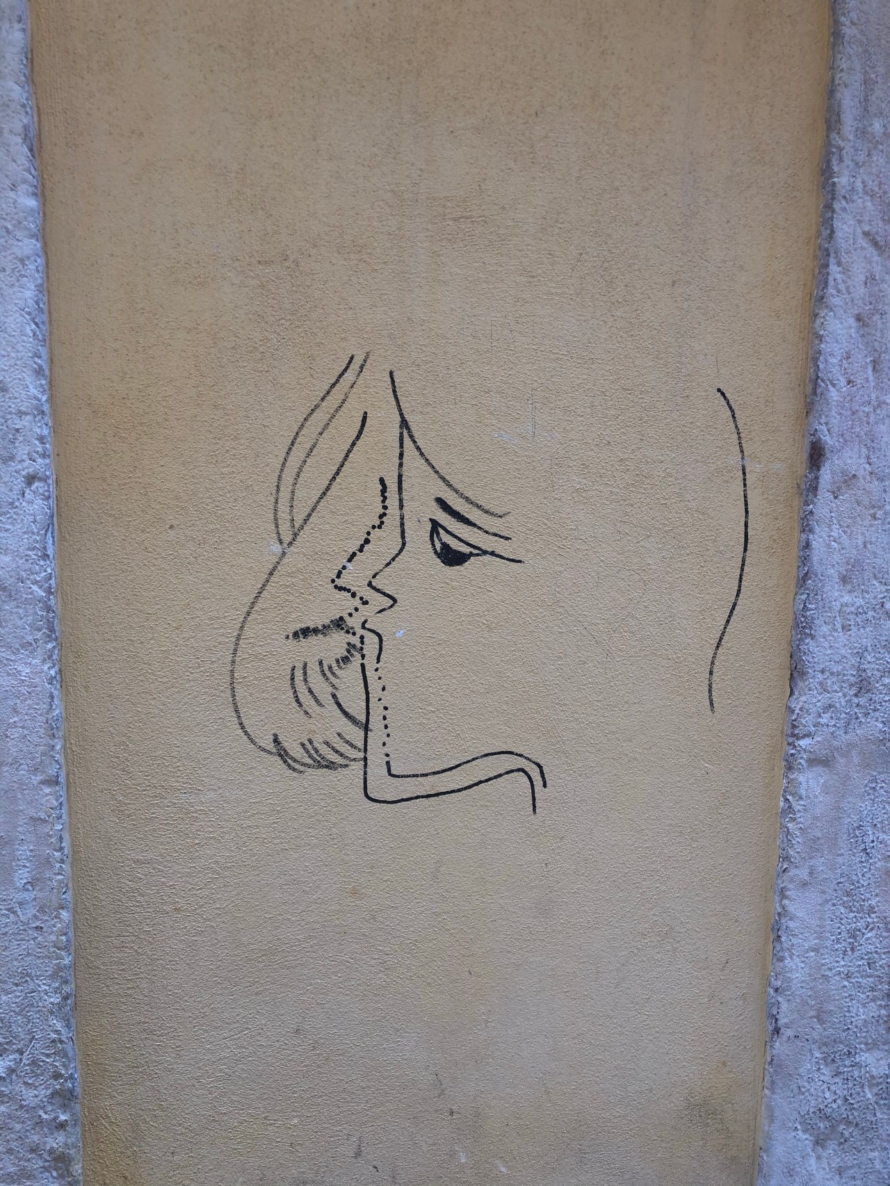 Et puis ce portrait d’une femme verte sur cette porte. Le coin est très mal famé le soir à partir de 18h.