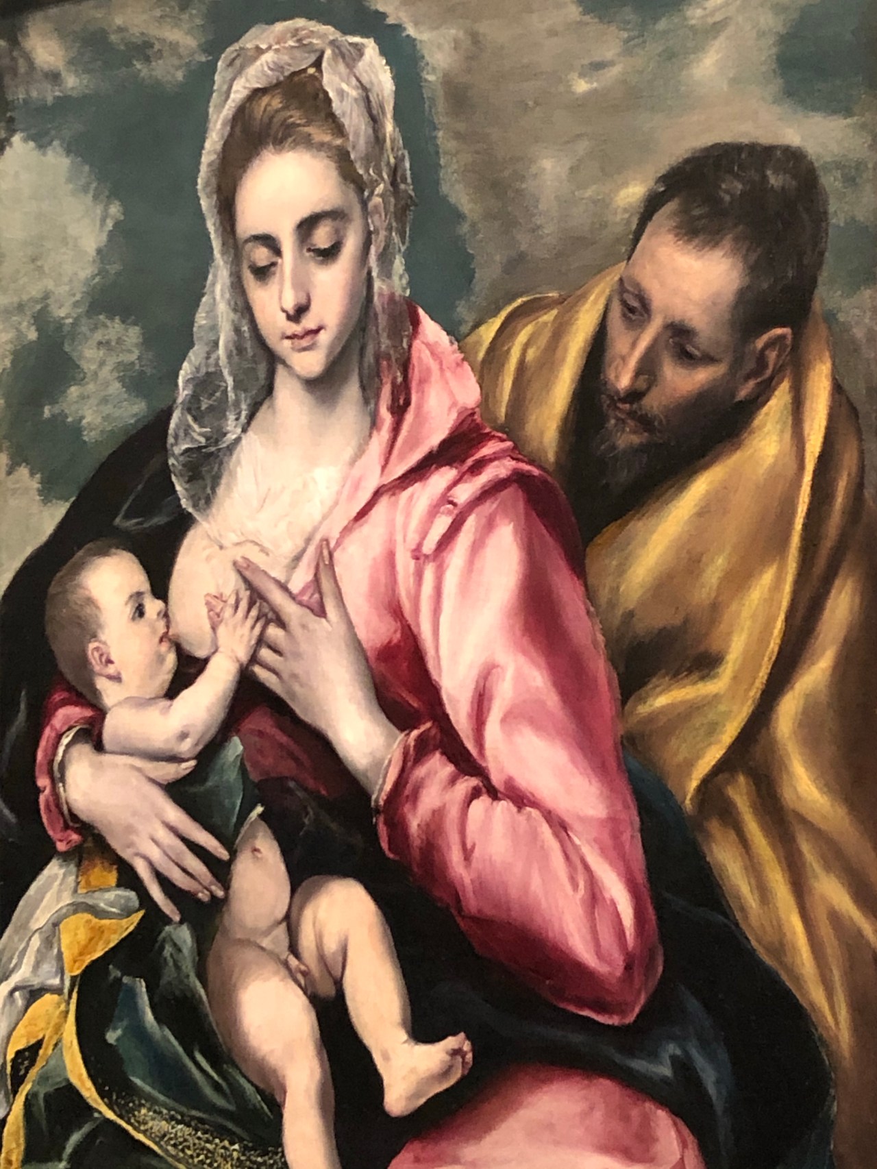 J’ai aussi adoré « La Sainte famille » avec cette femme qui donne le sein à l’enfant. Et cet homme qui regarde cette scène par derrière les épaules de la femme. Ce tableau est d’une luminosité, d’une douceur et d’une tendresse que j’en suis tout émue.