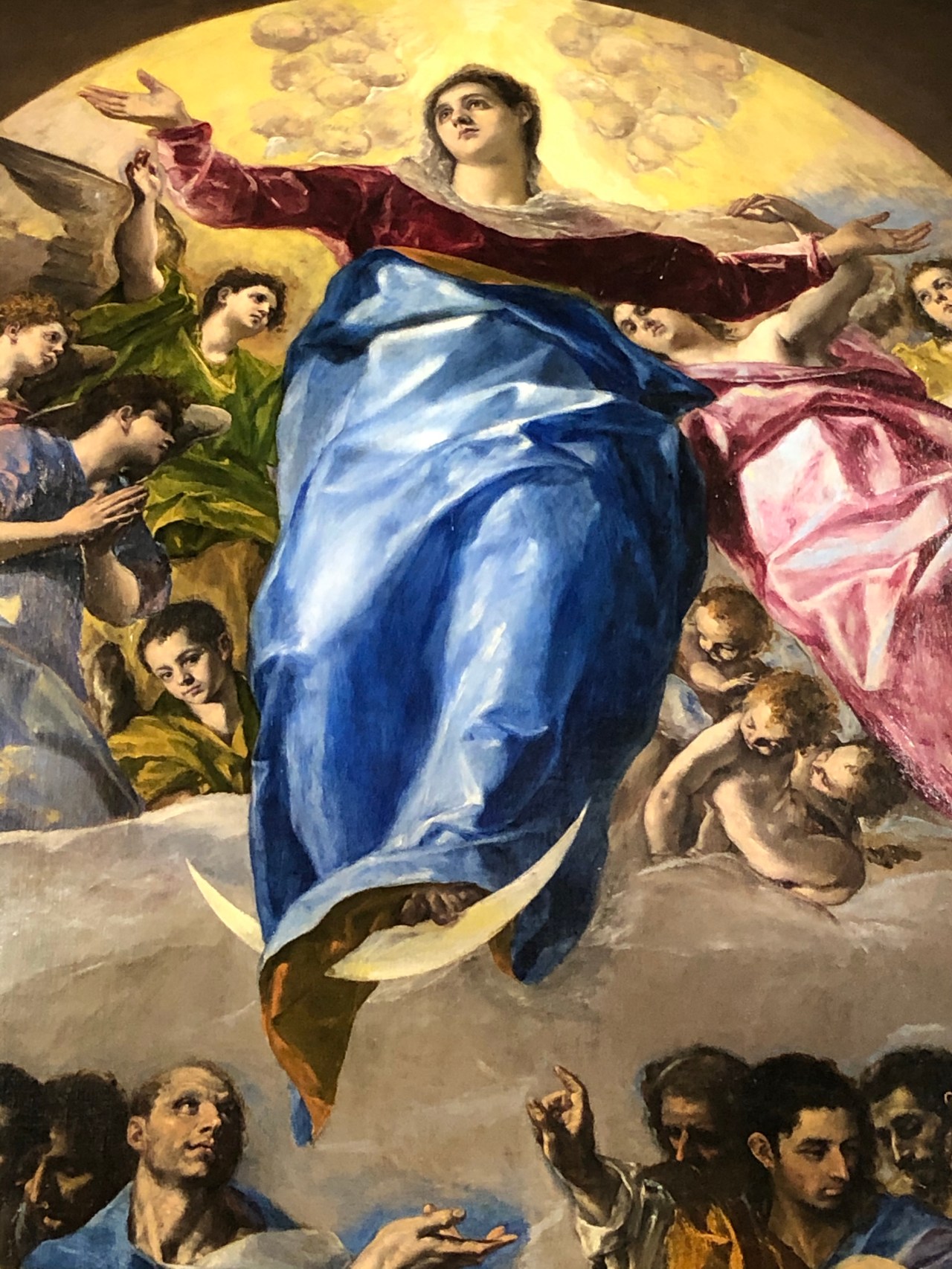 Le tableau « L’Assomption de la Vierge » est fascinant. La montée au ciel de la Vierge est extatique. Les couleurs, la liberté de ton, les mouvements des bras et l’accueil des anges est juste impressionnant de mouvement et de liberté. Les nuages qui font la différence entre le monde d’en haut et le monde d’en bas, avec la luminosité d’en haut donne à l’accueil de la Vierge une lumière et une force à l’élévation de dernière.