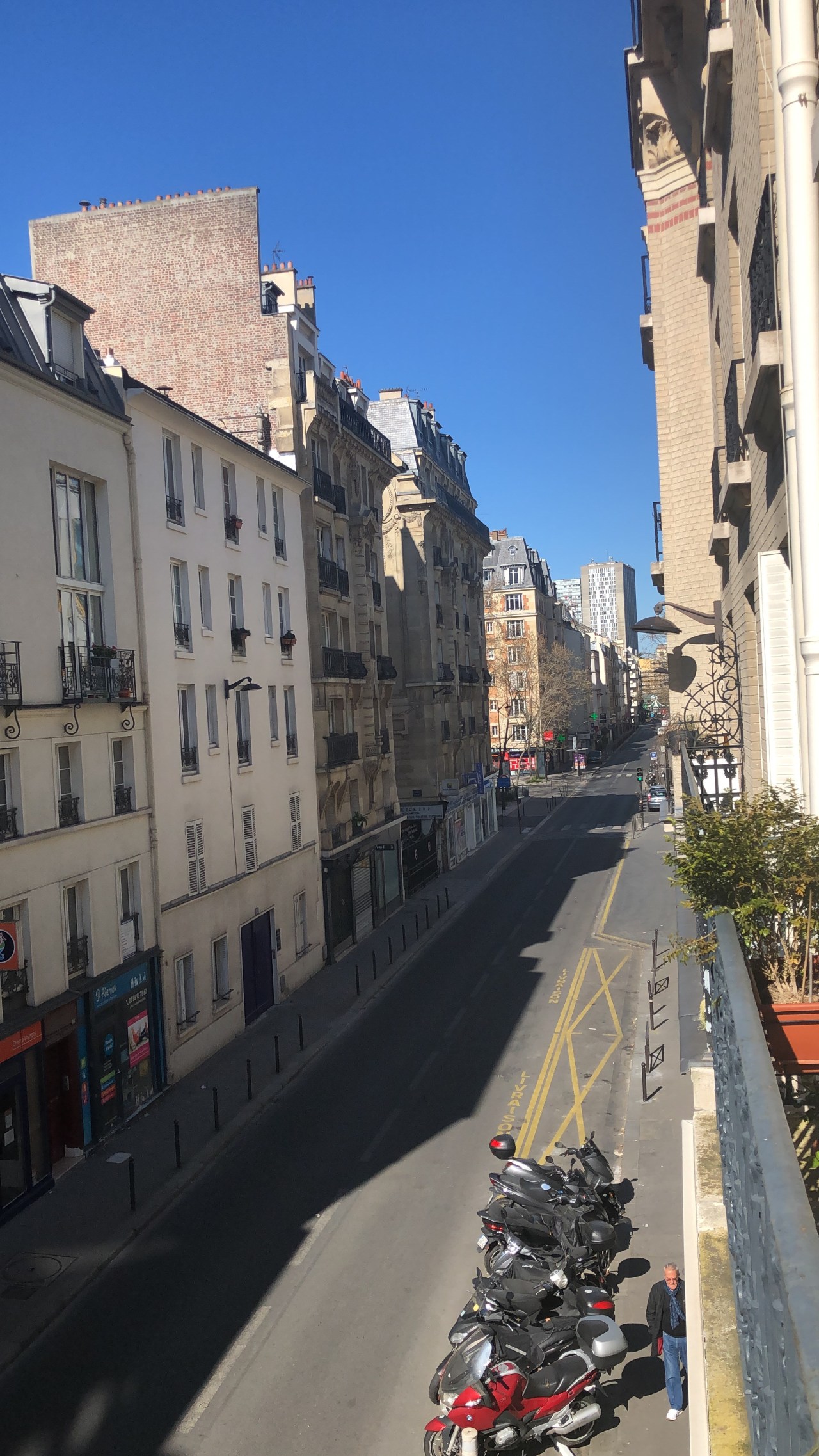 De temps en temps une moto vrombit ou bien les éboueurs ou les livreurs font du ramdam et nous dérangent presque dans nos vies confinées qui sont au ralenti. Ils nous apportent rituels et temporisation aux journées vides de mouvements.