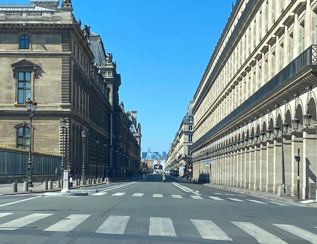 Notre-Dame est debout esseulée, auréolée ce jour-là, de nuages. Le Chatelet est vide et l’Opéra s’ennuie sans personne à qui montrer ses pas de danses. La rue de Rivoli fait un pied de nez aux voitures et ressemble au désert de Gobi ! La pyramide du Louvre semble endormie et abandonnée par les hommes.