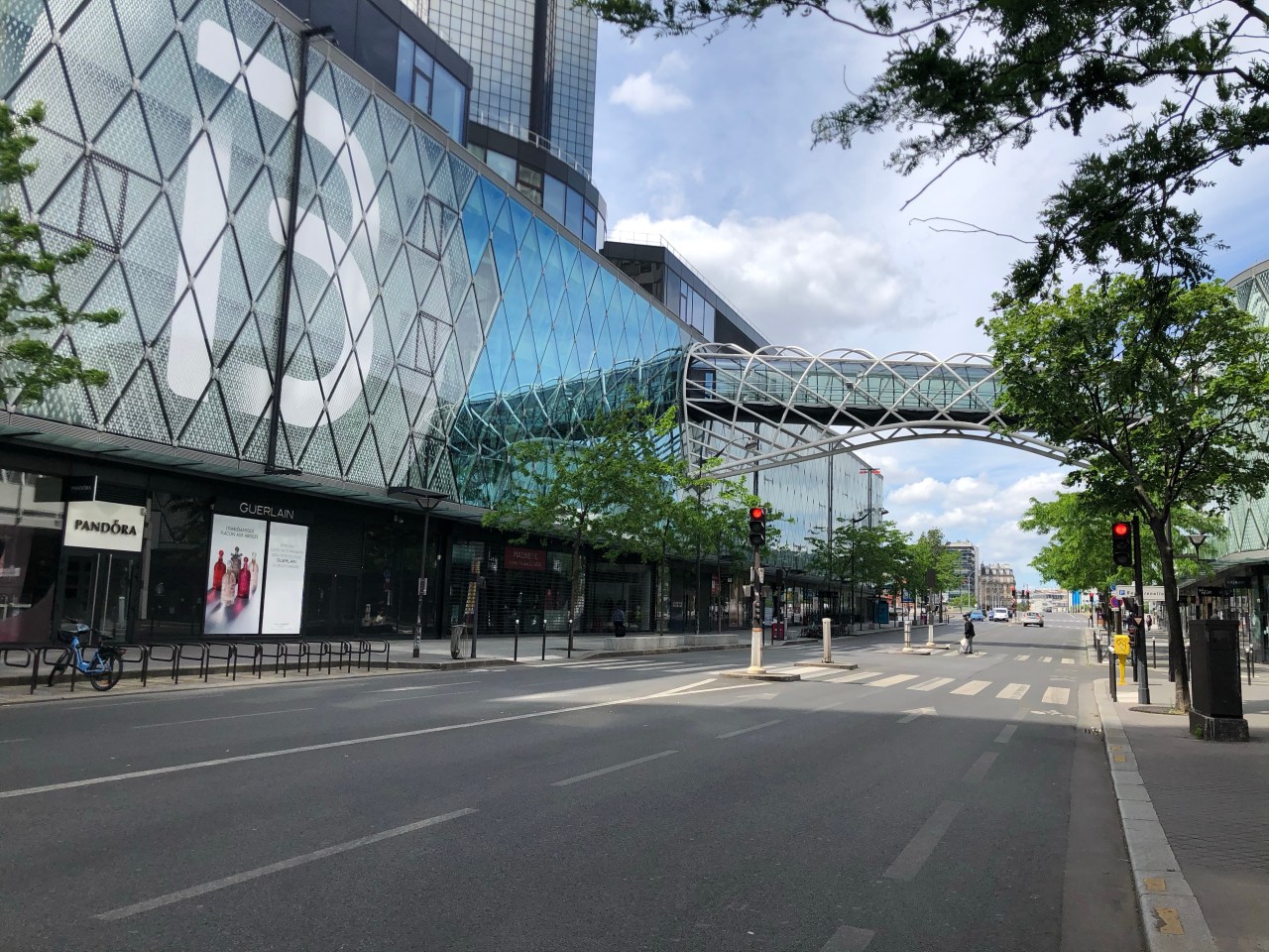 Beaugrenelle est transparente – on voit de l’extérieur la coupole bleue mauve et personne dans le centre commercial et dans la rue. Pas de voitures, pas de bruit – rien. Je n’ai jamais connu ce quartier ainsi vide, sans mouvement, sans voitures et concert de klaxon ! Idem pour les quais de la Seine – vide.