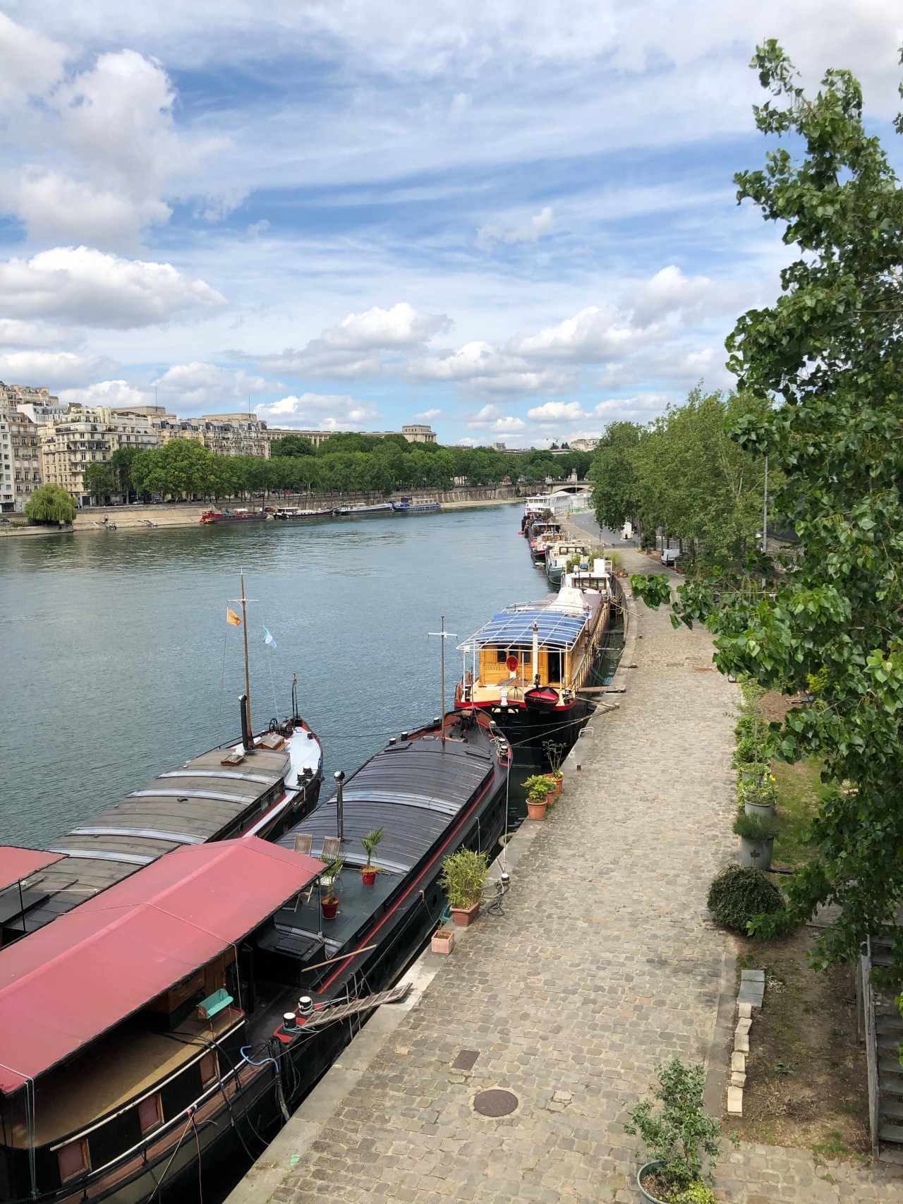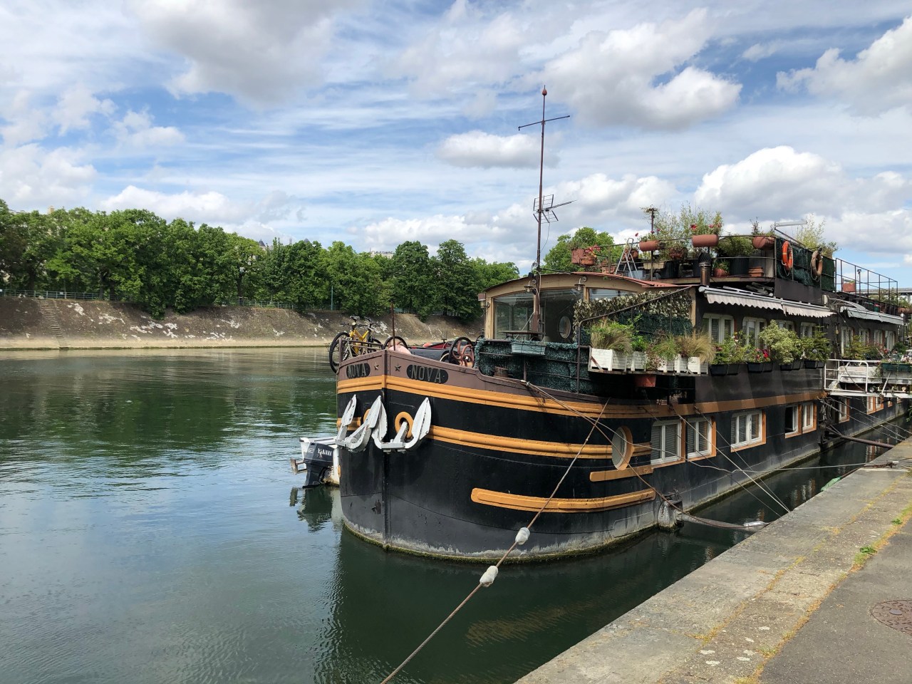 Les bateaux appartements sont amarrés au quai et reposent dans une quiétude prégnante. Comme il doit faire bon vivre sur la Seine en ce moment. Et tanguer au gré des vagues ou du flux.