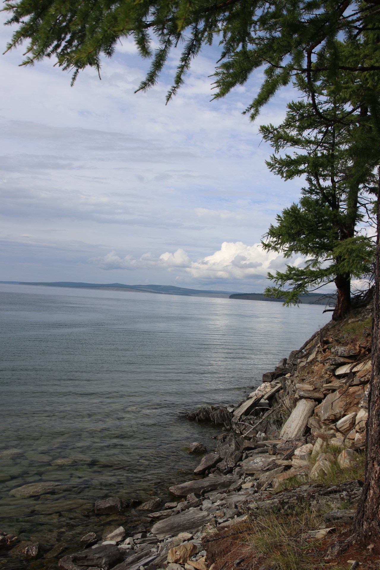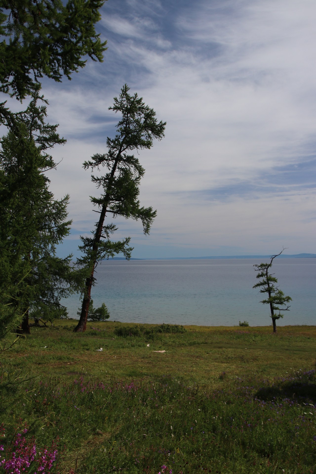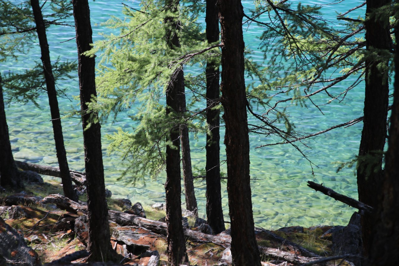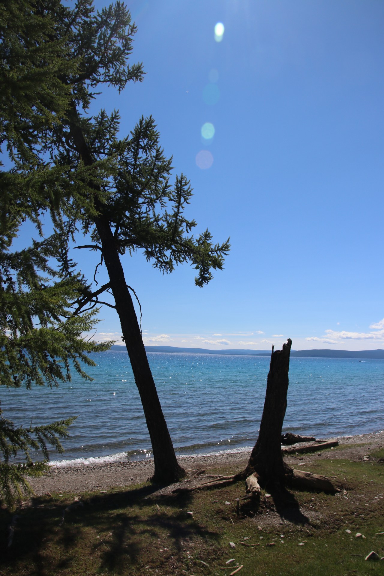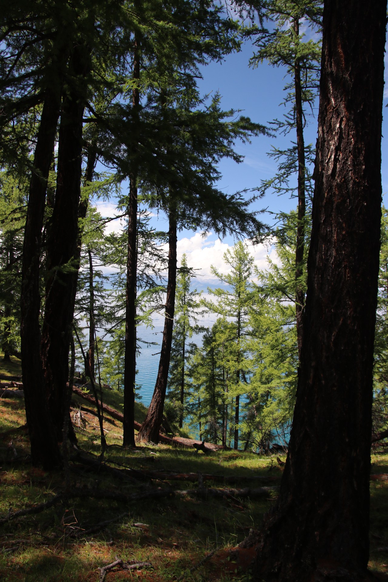 Nous étions arrivés à une cinquantaine de kilomètres de Khatgal sur la rive occidentale. Un endroit magnifique avec une baie et des forêts de mélèzes tout autour. Je pouvais de la yourte regarder les eaux du lac. Il me fallait traverser un champ, trempé par l’eau, pour atteindre le bord du lac et m’asseoir sur un tronc d’arbre sec. De là l’étendue était magnifique. On entendait les clapotis de l’eau, le flux et le reflux des fines vagues qui venaient frapper les galets gris du rebord. L’eau était d’une transparence incroyable, donnant une vision des galets, qui parsemaient ce même rebord du lac. On pouvait sonder la profondeur du lac et sentir les ondes de l’eau.