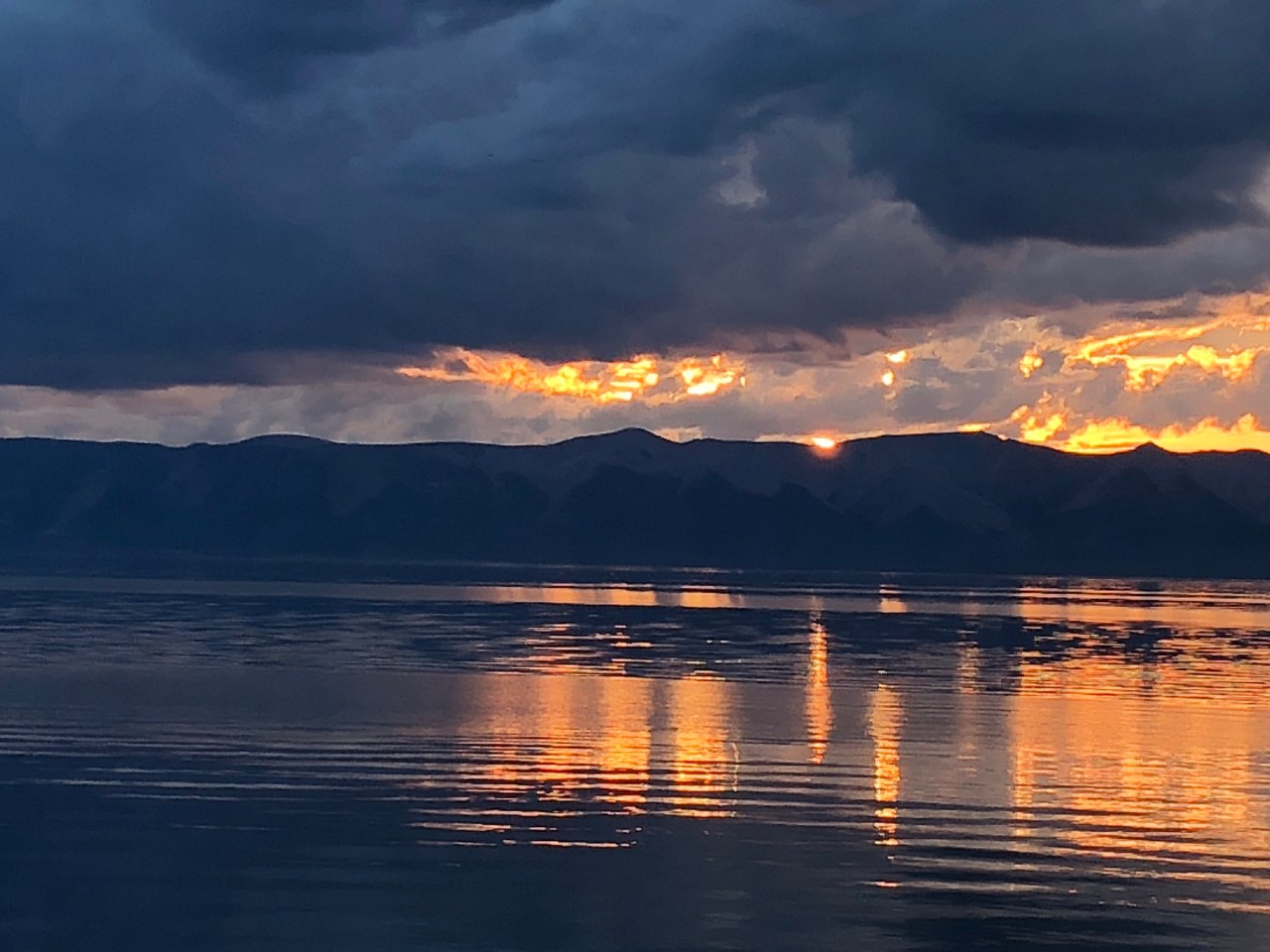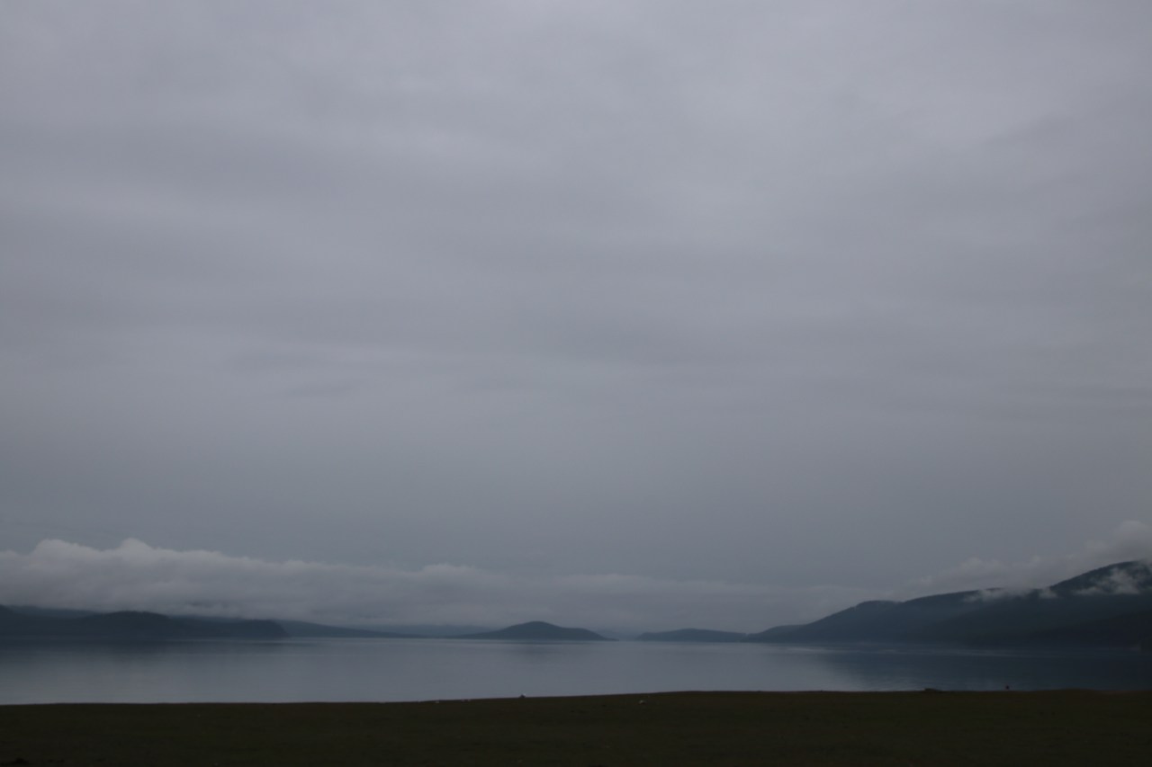 Le lieu n’était pas plus accueillant que le précédent. Tout était gris. On distinguait à peine l’autre rive du lac, à quelques kilomètres de nous. L’orage se faisait menaçant et le lac se teintait d’une couleur acier qui n’augurait, à nouveau, rien de bon. Les nuages recouvraient les montagnes et je me réfugiais dans la yourte.