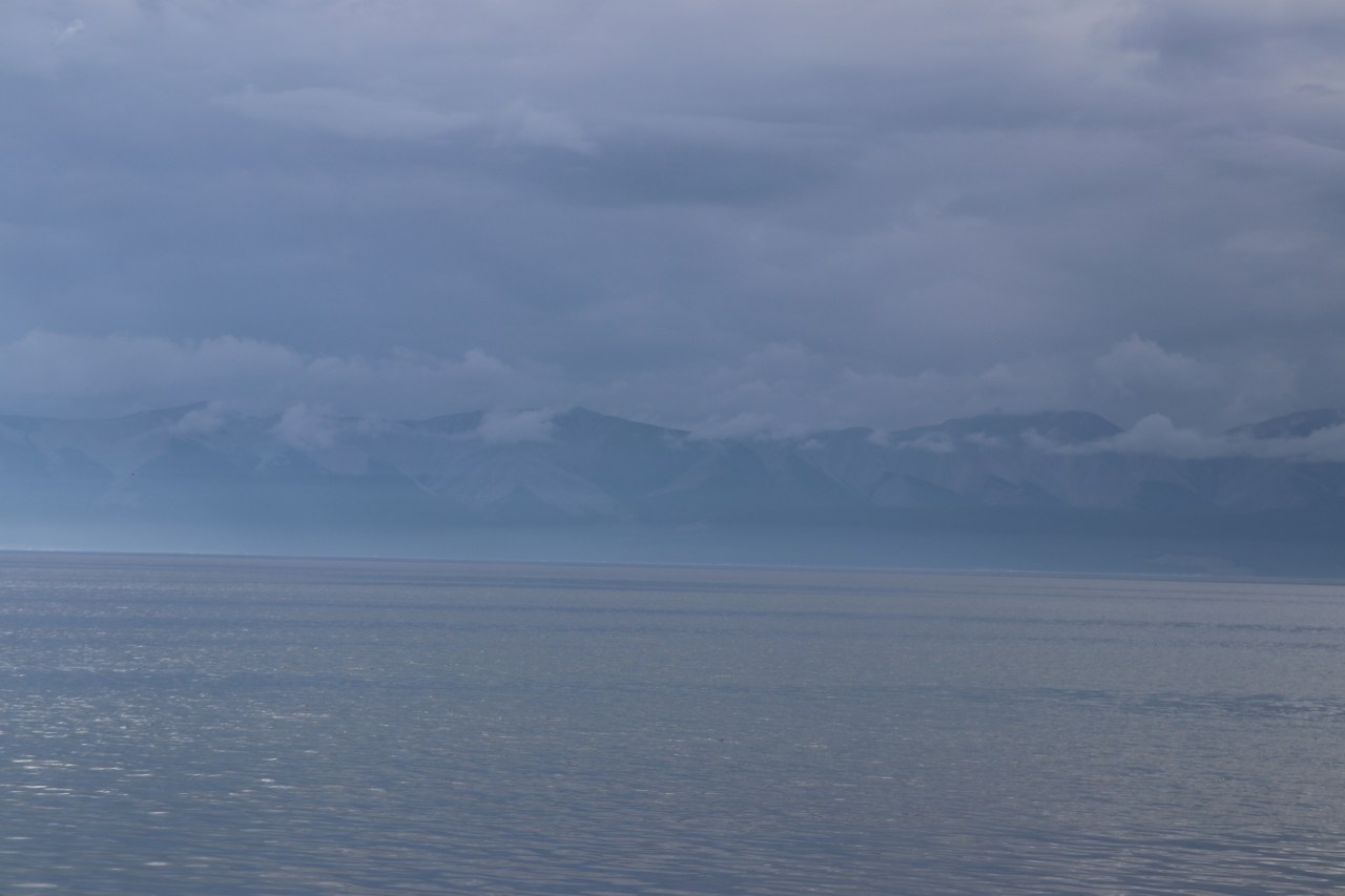 C’était un endroit idyllique où se reposer, méditer et regarder l’infini. Les yeux étaient arrêtés par le versant de la côte orientale, suffisamment lointaine pour en imaginer les contours. Je voulais vivre de mon corps et de mon âme le lac, le sentir, le renifler et me l’approprier. Je n’avais qu’une envie c’était de me jeter et de nager dans ce lac. Mais impossible car trop froid. J’ai pourtant vu un jeune, d’une quinzaine d’années, s’entrainer dans l’eau et nager. Il ne restait pas longtemps mais y revenait à multiples reprises. Pourtant nous nous étions baignés dans d’autres lacs, tout le long du voyage, en Mongolie. Mais là j’étais tétanisée même en trempant mes pieds dans l’eau. Décidément trop froid et pas accueillant. Cela donnait à nouveau la sensation du lac Baïkal – un lac froid dans sa partie occidentale où les montagnes amplifiaient le phénomène.