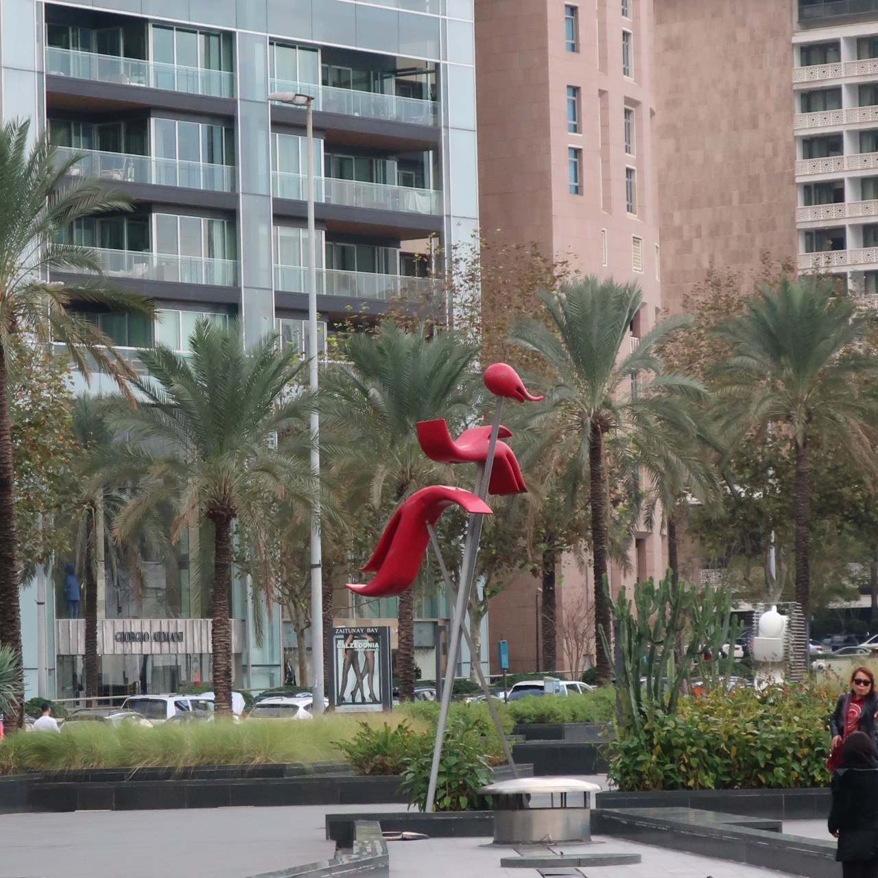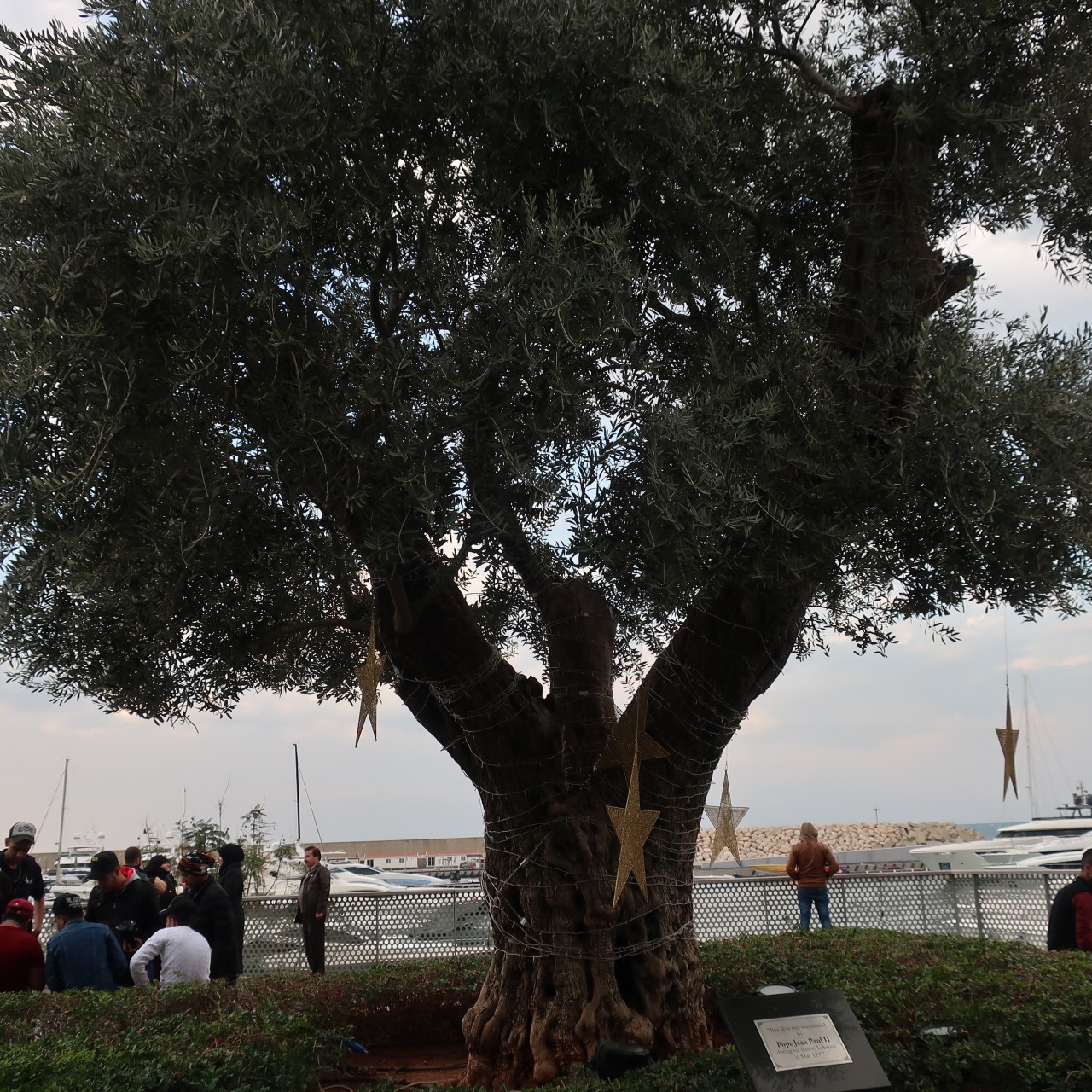 Elle est ornée sur le dessus de bassins avec différentes œuvres rouges ou bien de marbre comme le cheval blanc devant les restaurants. Des œuvres en forme de revolver ornent les plateformes ; des fleurs rouges, jaunes et vertes, dardent leurs épis vers le ciel ; un olivier est là pour marquer la paix et la venue du pape !