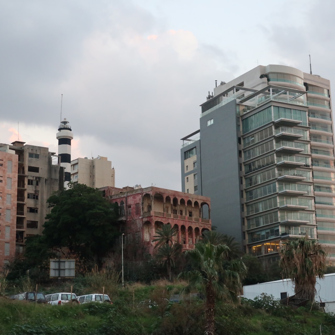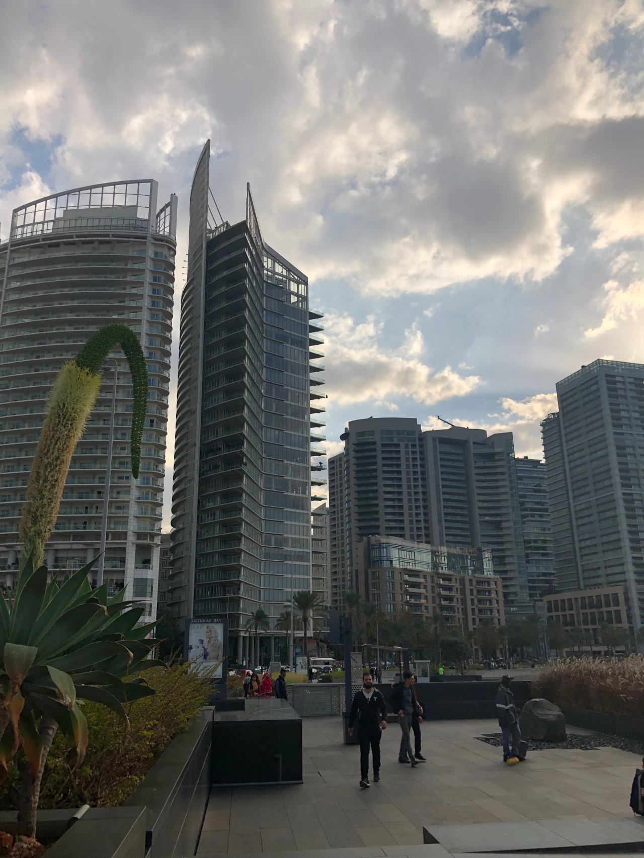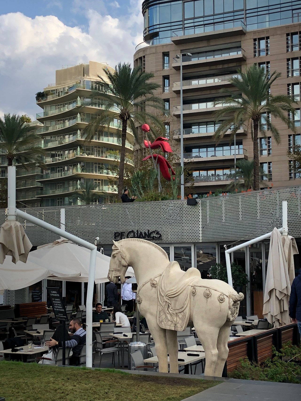 De là où on se trouve on peut aussi admirer : les bâtiments qui longent la marina et surtout apercevoir les dégâts de la guerre : l’ex-hôtel Holiday Inn bombardé pendant la guerre civile qui surplombe encore aujourd’hui l’hôtel Phoenicia ! Triste beauté, d’un temps passé et révolu, mais qui est là, comme le gardien des mémoires qui fuient le souvenirs de terribles moments ! Planté là il regarde le temps qui passe, les bâtiments hyper modernes qui rodent autour de lui et cherchent à l’encercler et le faire disparaître. Mais que nenni il est toujours là à trôner et défier l’histoire de la ville.