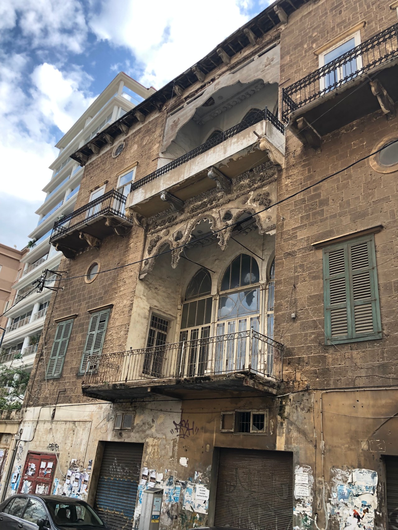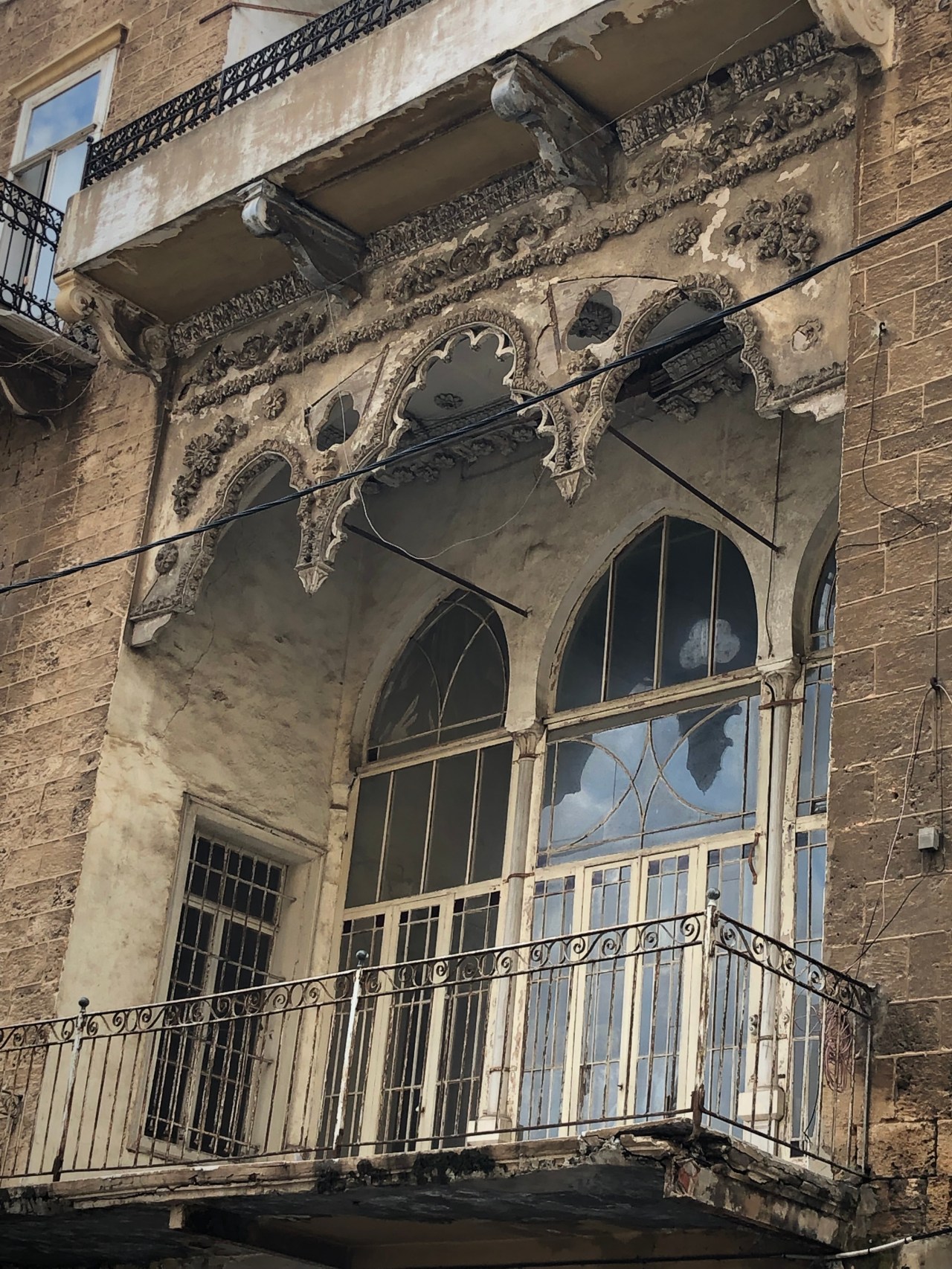Je parcours les rues proches de l’Université américaine de Beyrouth, pour descendre le long des rues Clémenceau, puis des escaliers qui rapprochent de la mer, mais qui m’obligent à faire des détours et longer des immeubles et découvrir, à ma grande joie et surprise, de vieux immeubles de style ottomans, tous délabrés, mais tellement beaux. Cette ville a dû connaitre son heure de gloire !