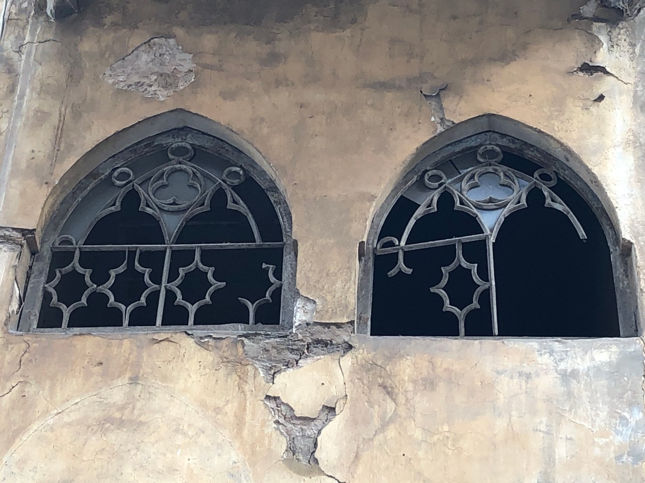 Je me régale des yeux à juste regarder ces bâtiments, avec des fenêtres en forme d’ogive, avec des balcons, qui à l’époque, devaient donner pleine vue sur la mer. Les fenêtres sont ciselées et de grandes baies vitrées faites de vitraux honorent le temps et les guerres qui sont passées par là.
