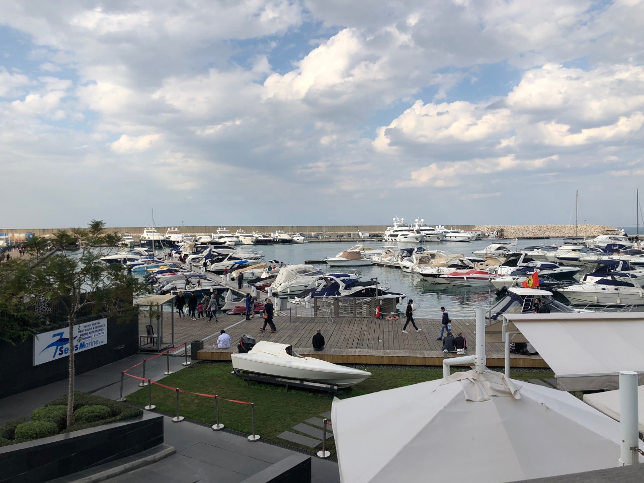 Et puis les gens se moquent de tout cela. Ils marchent au soleil, profitent du beau temps, de la chaleur et des magnifiques bateaux échoués dans la marina. Car la marina est pleine de bateaux, les plus beaux, les plus grands les uns des autres. C’est joli et on se croirait sur la croisette ! Et là on n’est pas en manque car les femmes rivalisent d’ingéniosité ! C’est un moment de repos. J’en profite, après une longue marche, pour déjeuner sous les parasols tellement le soleil dardait !