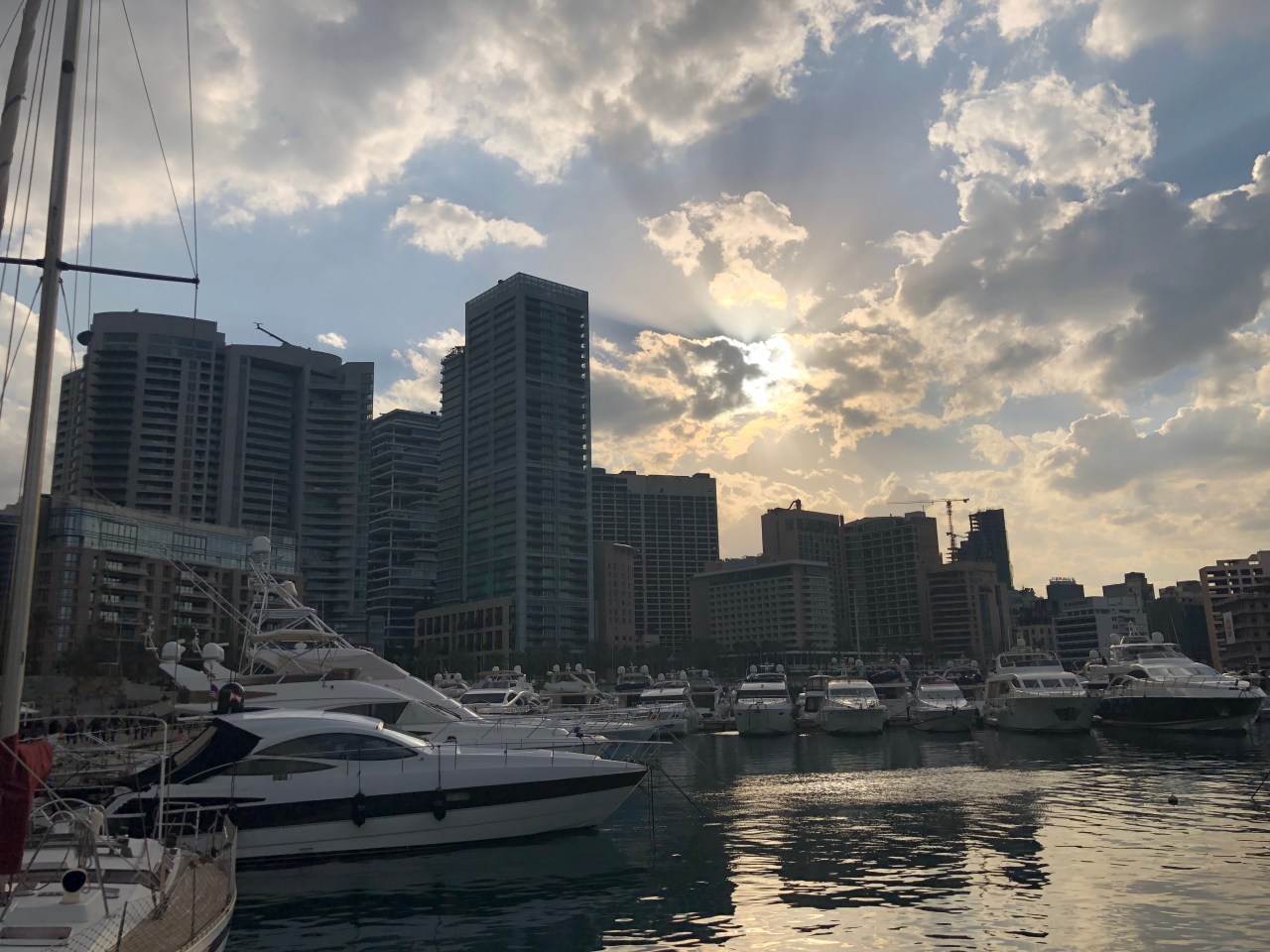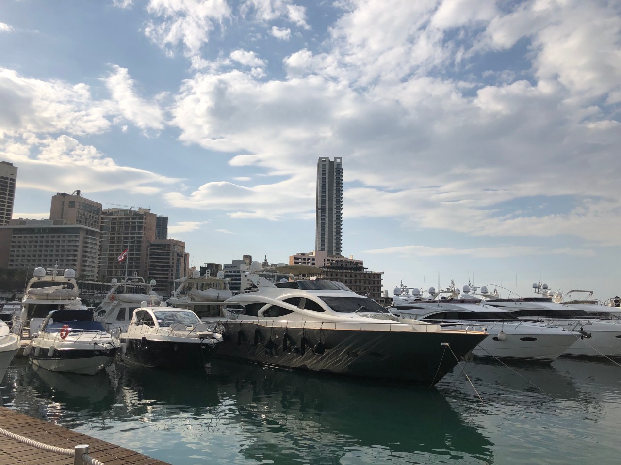 Mais là refleurit la folie de la construction et du modernisme de Beyrouth ! Tous les immeubles nouveaux sont de verre et tout en hauteur. Que des gratte-ciels modernes ! Ils dominent la mer et les bords de mer pour cacher les misères de la guerre. Tout est faste. Et puis la joie est là, la marina flambe de bateaux et de richesses.