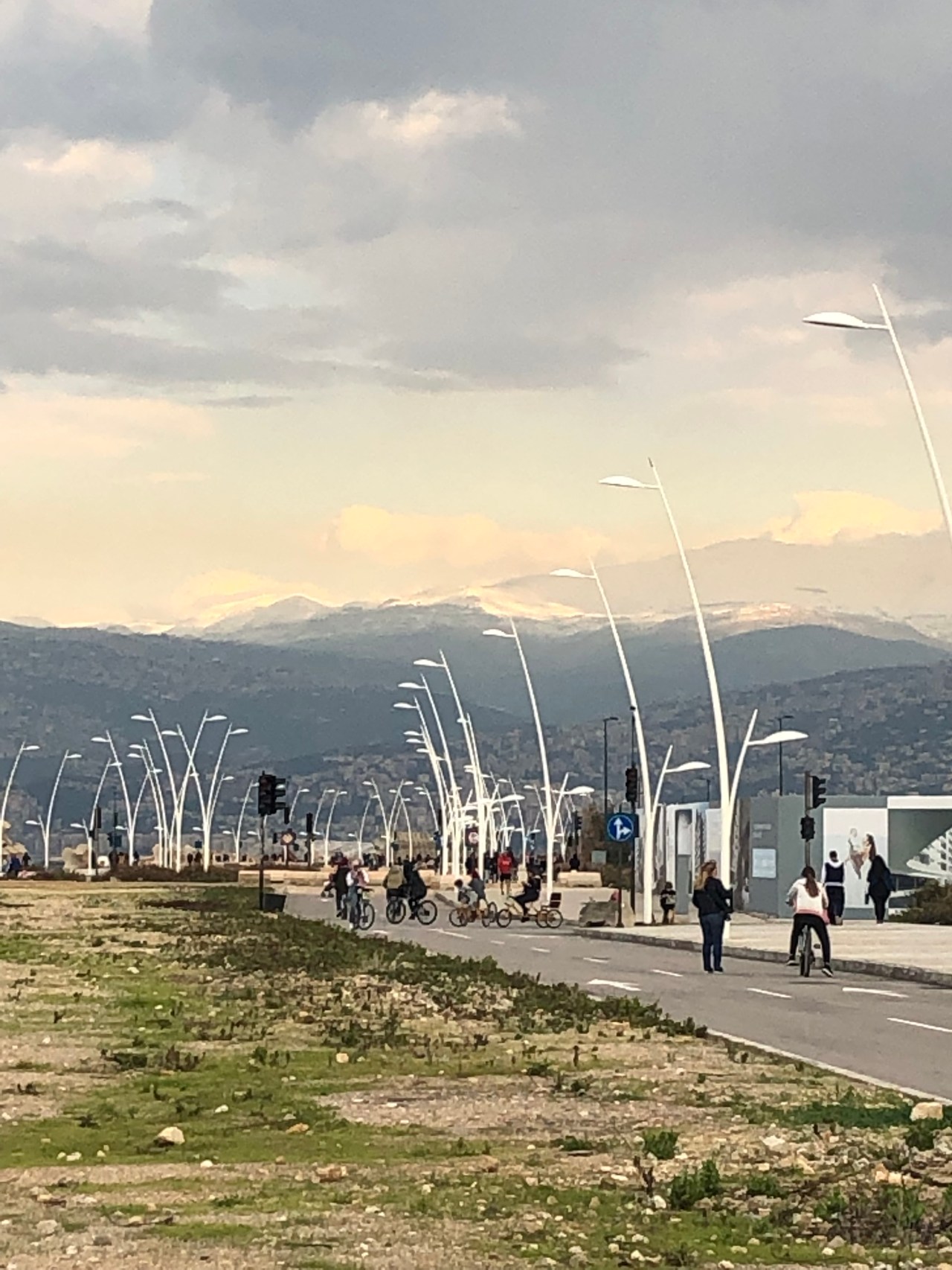 J’ai repris la marche vers l’arrière des souks et les nouveaux mails qui se construisent au centre-ville de Beyrouth. J’ai surtout profité des enfants qui apprennent à faire du vélo et de la vue sur les montagnes. Et puis la population se promènent en vélo, en rollers ou bien à pieds et profitent des derniers rayons du soleil avant le coucher du soleil et le rougeoiement sur le bord de mer.