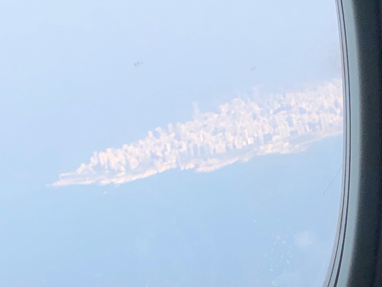 Le mer est bleue foncée et elle est agitée – mais du haut on s’en moque – on regarde et on absorbe le rivage et ses habitants.