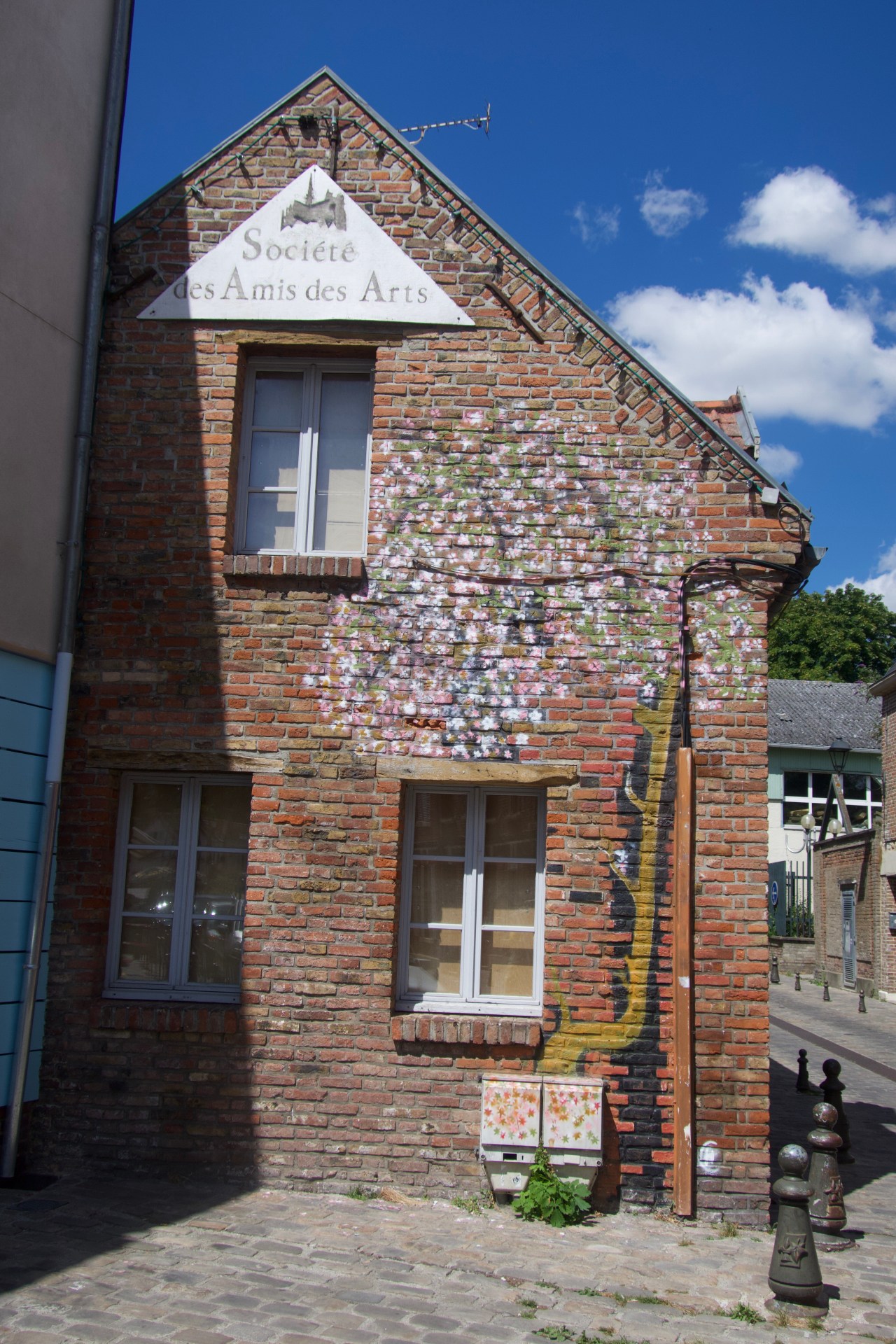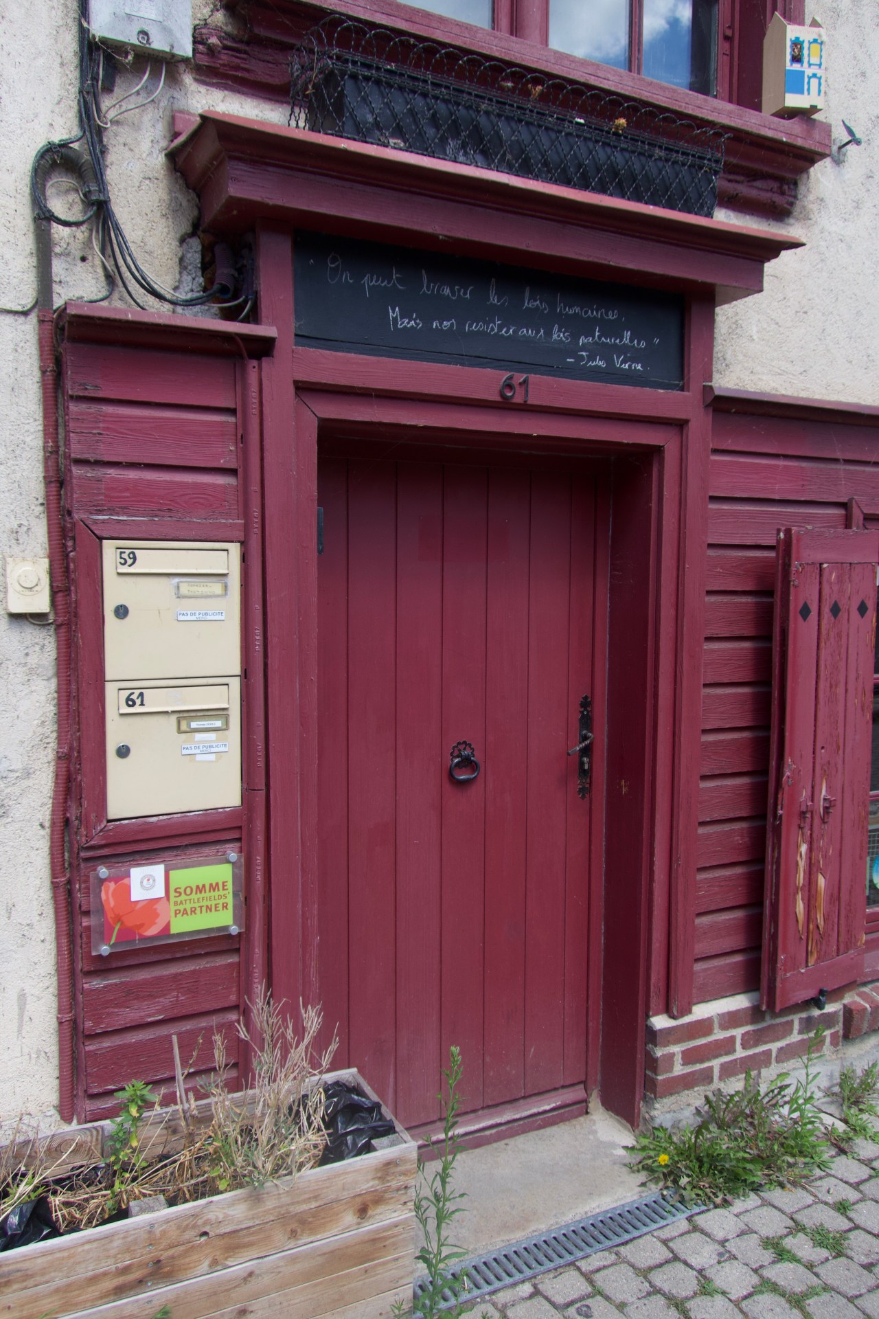 Et puis découvrant la passerelle qui vous fait entrer dans le quartier vous voilà aux prises directes avec la vie calme de cet endroit. C’est je crois l’ancien quartier des pêcheurs. Au fronton des portes on peut lire du Jules Vernes car ce dernier a vécu à Amiens. Comme « On peut braver les lois humaines, mais non résister aux lois naturelles ». Cela nous parle en ce moment où la nature se déchaine contre l’homme et où le Covid fait la loi.