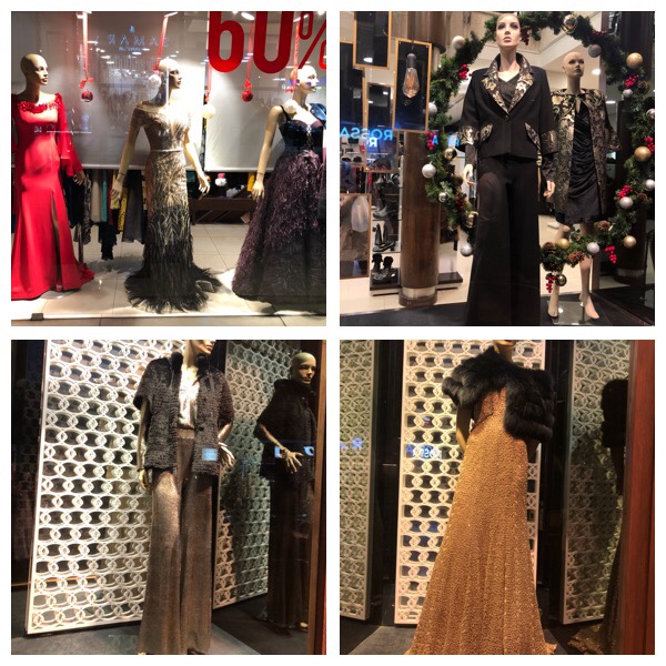 Dans l’Hamra j’ai pu m’amuser à voir des robes longues dorées ou pantalons aux pattes d’éléphants arrondis pour les fêtes de fin d’année, les habits clinquants dorés ou argentés ou noirs avec des vestes en fourrure à manches courtes, ou de strass ou noires avec des cols à fleurs dorées ; ou bien des robes longues rouges pétant, noires avec des fanfreluches au bas, ou mauve cintrée à la taille avec des fanfreluches et des moirures sur le bas ; ou bien des boutiques plus plan-plan mais avec des clins d’œil !