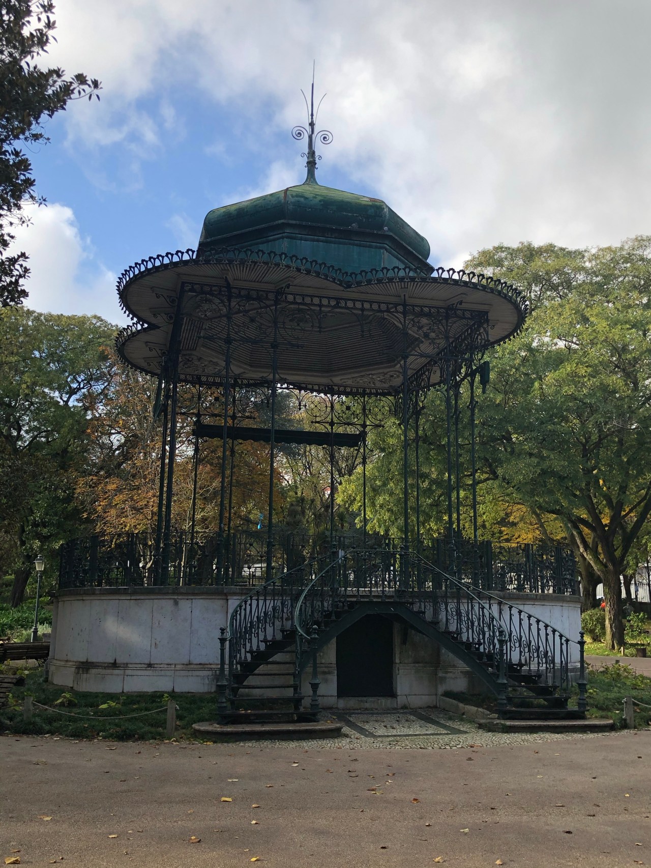 Des musiciens viennent jouer de la musique pendant l’été. Il a été construit en 1884 et était sur le Passeio Publico sur l’Avenida de la Libertad, avant d’être transféré au jardin de Estrela en 1936. Il est encadré de superbes arbres aux tronc immenses : en particulier des magnolias mais aussi des figuiers, des cactus, des jacarandas (fleurs mauves), des hévéas, des tipuana tipu et des dragonniers. Un rêve pour les botanistes !