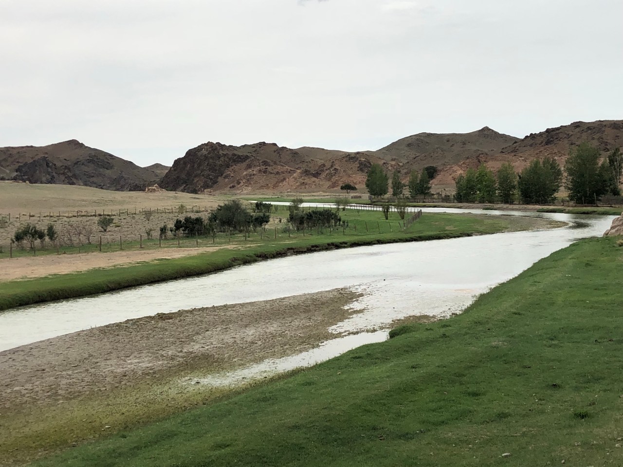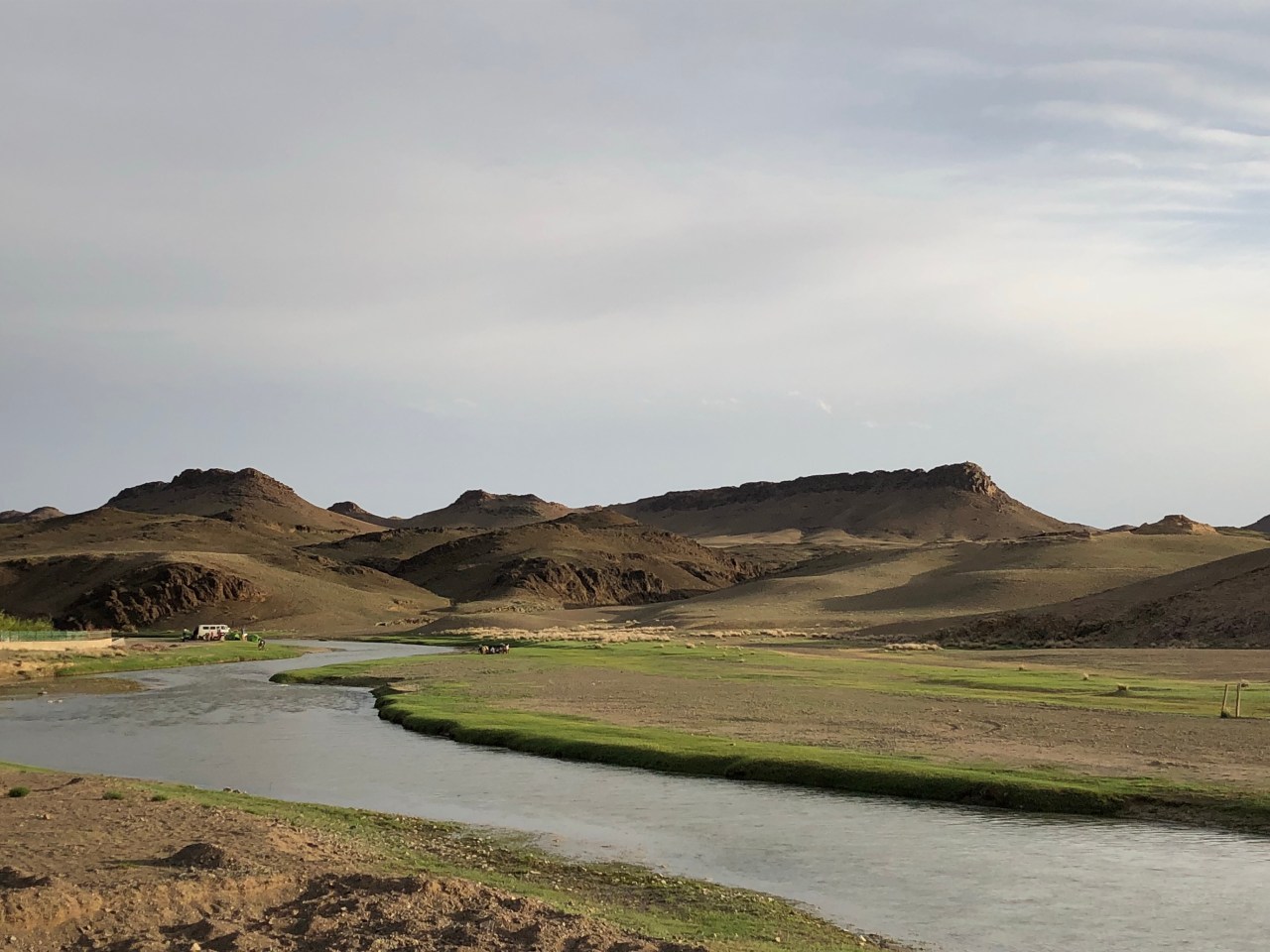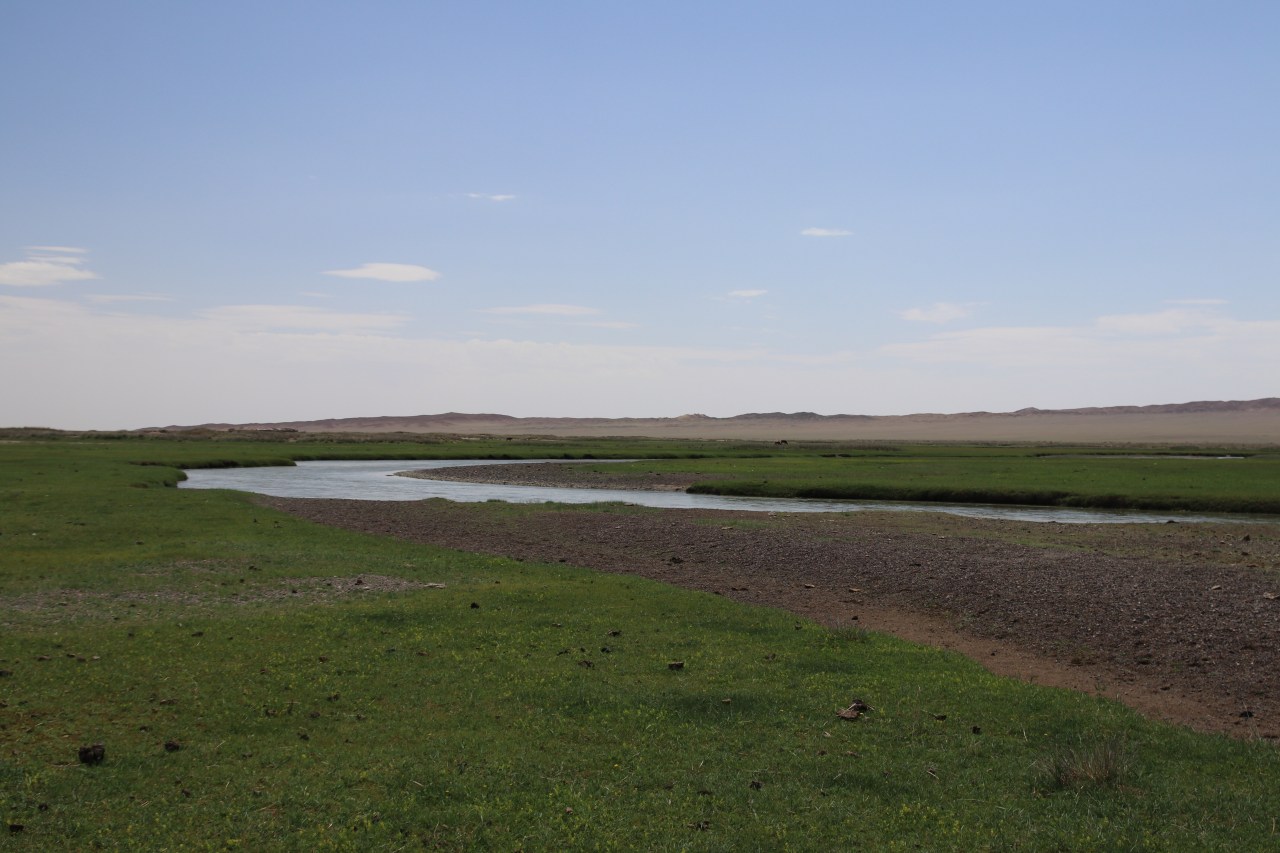 Les alentours sont vraiment très hostiles : déserts en vue de tous les côtés, sable fin jaune et pierres coupantes. Quelques touffes de verdure, survivantes de ce désert et arrosée par les pluies diluviennes ou les nappes phréatiques s’échappant de la rivière. Seul un méandre de la rivière Onguii apportait un peu de fraicheur dans un endroit où la chaleur plombait l’envie de vous y promener.