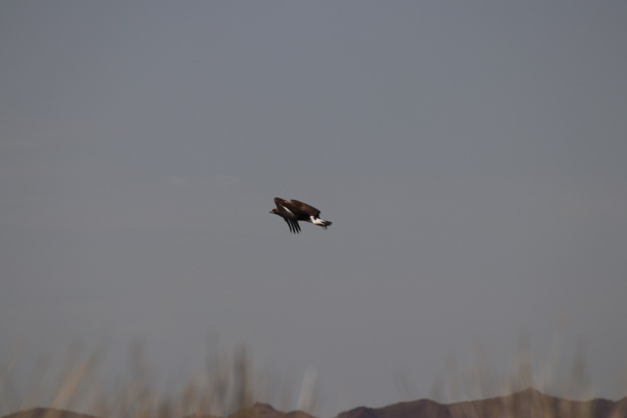 Une rivière tournoyait et ses méandres laissaient la possibilité de se rafraîchir. Ce que j’ai fait naturellement – tremper mes jambes dans une eau fraiche ! L’eau était couleur acier et aussi glaciale que sa couleur ! Le contraste était fort entre la chaleur ambiante et la froideur de la rivière. Le courant était fort et il fallait faire attention à ne pas glisser sur les herbes ni tomber. Il faisait la joie des oiseaux en particulier des buses ou aigles qui se cachaient dans les hautes herbes beiges, sèches et dures comme des piquants.