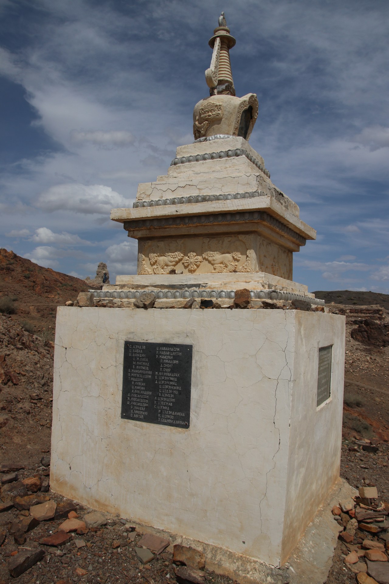 Ce site fut pourtant un très grand lieu de spiritualité en Mongolie : un millier de lamas ! En 1937 les purges des communistes firent 200 morts parmi les moines, des déportations entre autre. Tout est désolation sur ce site et on ne peut imaginer que ce lieu fut si important pour la religion bouddhiste en Mongolie. Tout est resté comme après le carnage réalisé par les purges : bâtiments démolis, ruines, murs effondrés, pierres partout, pans de murs restants. En un mot un lieu de miséricorde et de tristesse profonde. Mais pas de spiritualité !